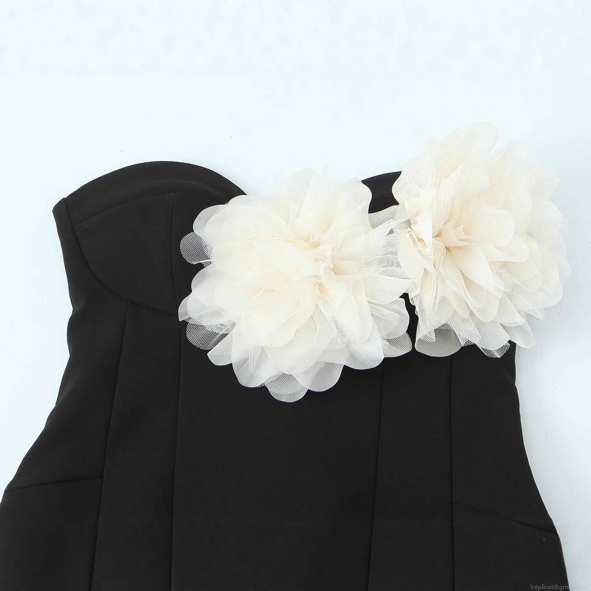 Color Blocking, Three-dimensional Flowers, 3d Flowers, Invisible Zipper, Strapless Design