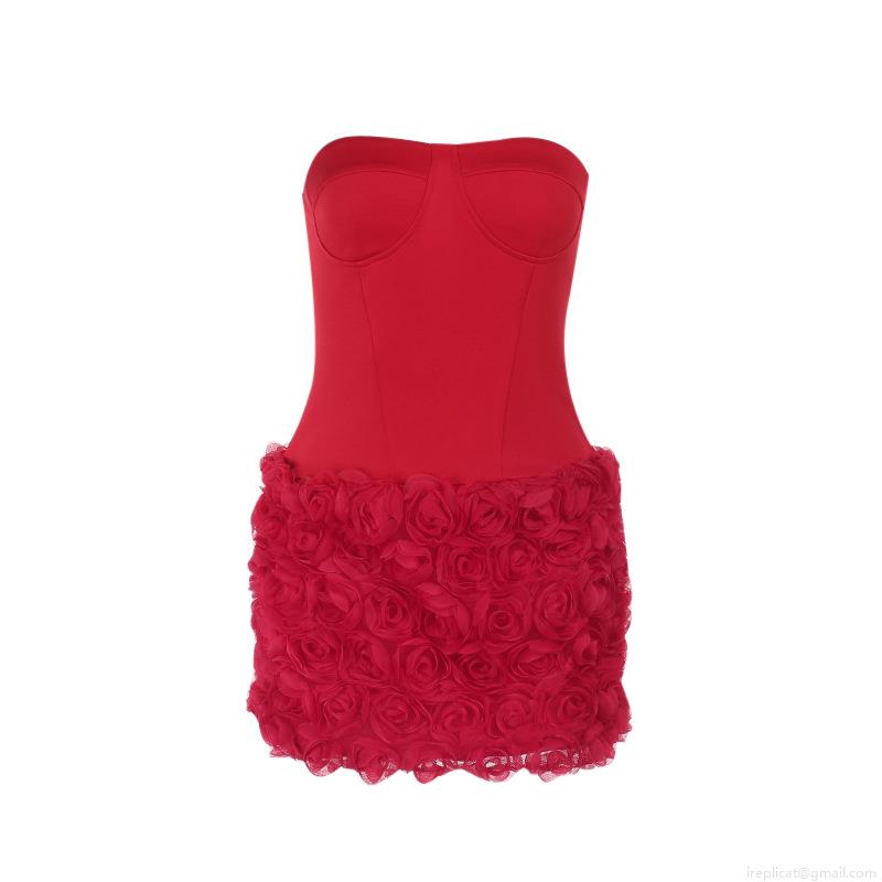• Women's Sexy Strapless Mini Dress Elegant 3D Rose Flower Detail Corset Bodycon Dress Polyester Party Evening Outfits Red Black Clubwear