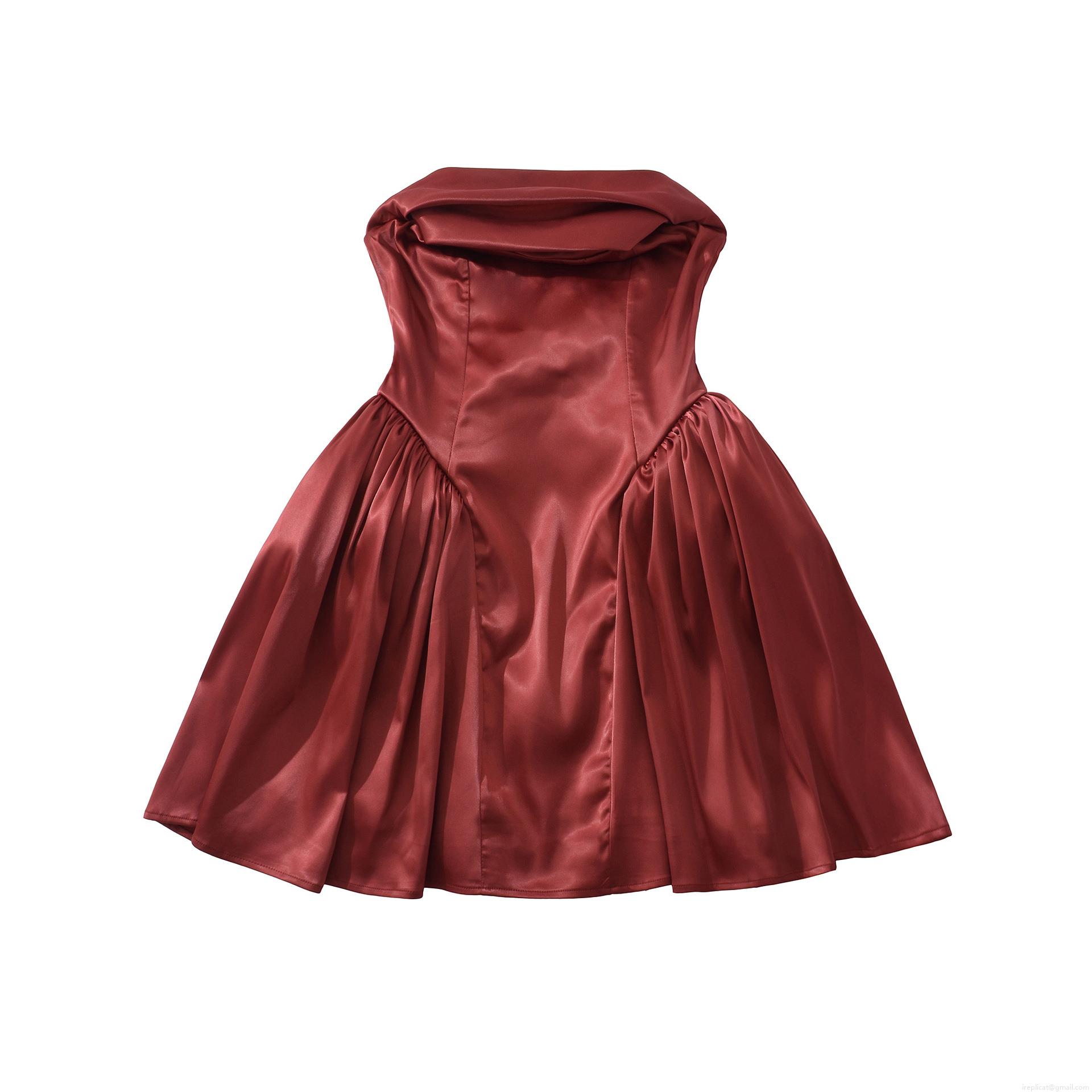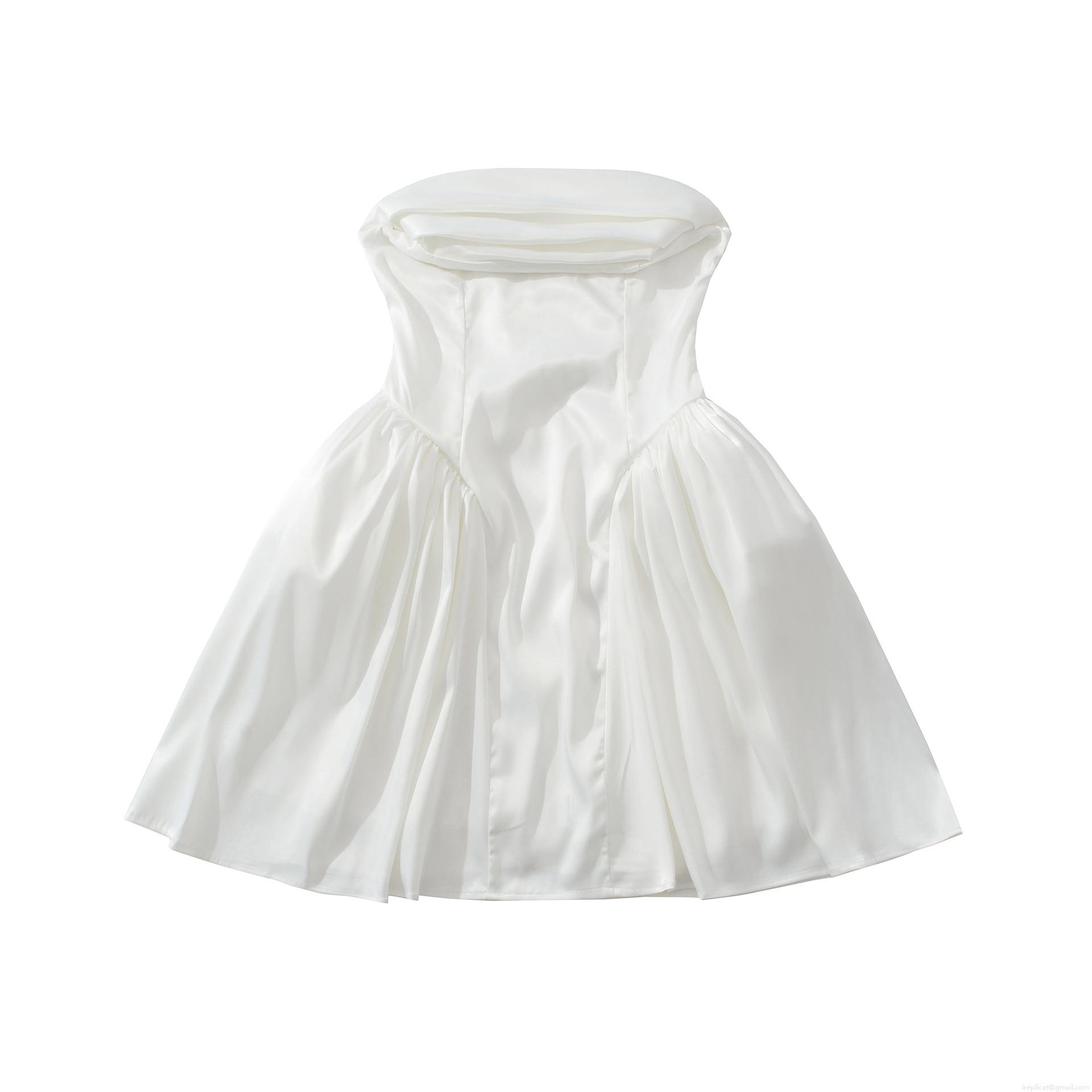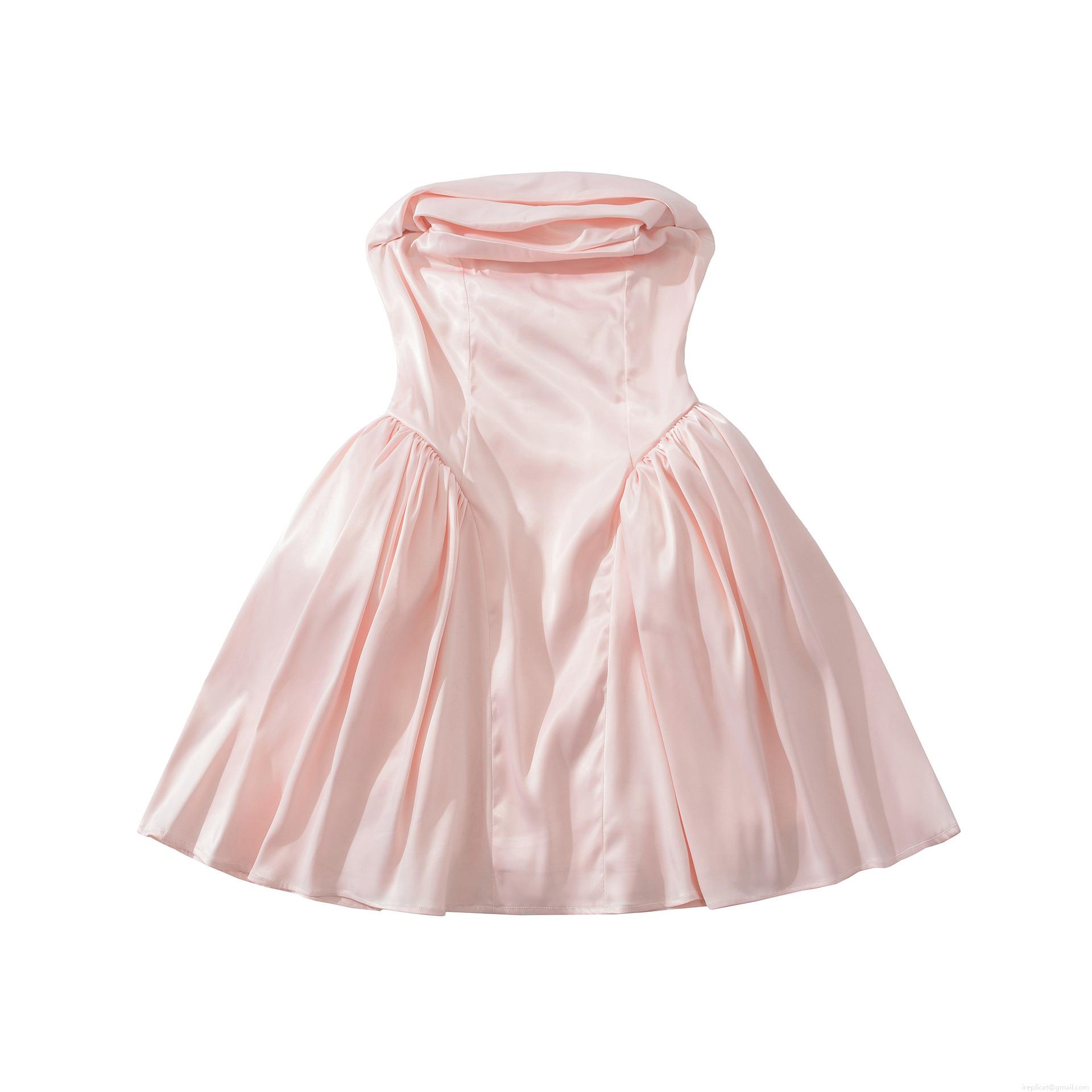 Solid Color, Splice, Pleats, Strapless, Satin Finish
