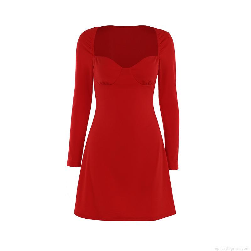• Women's Sexy Sweetheart Neck Long Sleeve Bodycon Mini Dress Solid Color Polyester Spandex Blend Slim Fit Elegant Autumn Party Cocktail Clubwear Dress