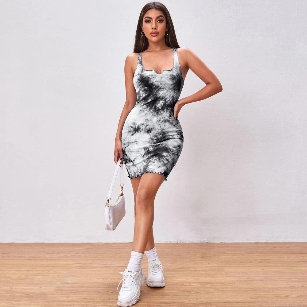 • Women's Sexy Tie-Dye Rib-Knit Bodycon Mini Dress Sleeveless Square Neck Stretchy Slim Fit Tank Dress For Summer Streetwear Party Clubwear