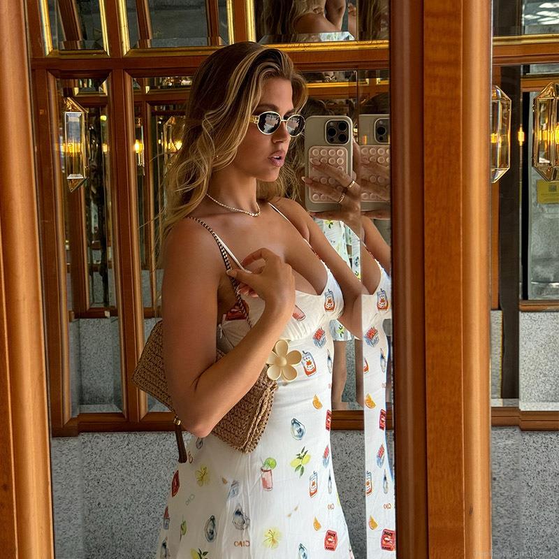 • Women's Sexy U-Neck Low Cut Mini Dress Polyester Spandex Slim Fit Sleeveless Spaghetti Strap Cartoon Food Print Sundress For Summer Beach Vacation