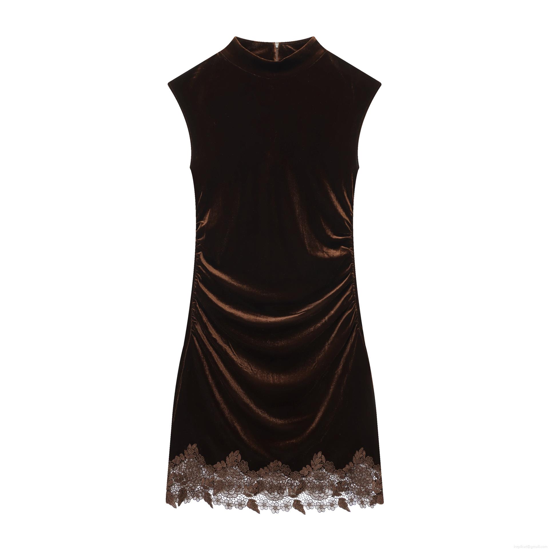 • Women's Sexy Velvet Polyester Mini Dress Sleeveless Mock Neck Ruched Bodycon Lace Hem Party Dress Evening Cocktail Clubwear Elegant Ladies