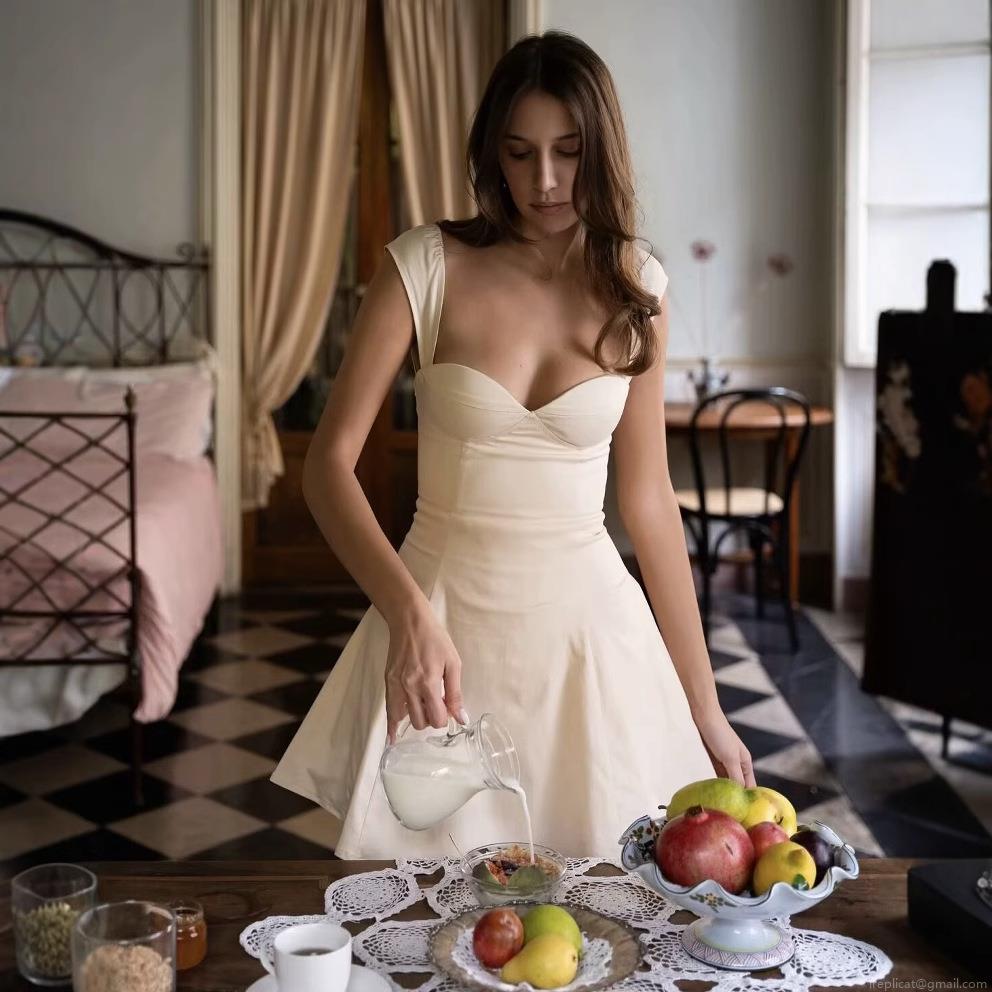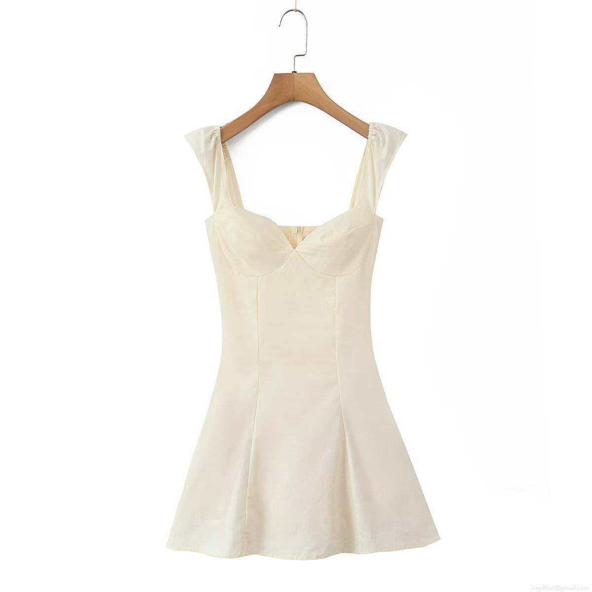 • Women's Sexy Vintage 100% Cotton Mini Dress Square Neck Backless Lace Up A-Line Short Dress For Party Dating Summer White Camisole Dress