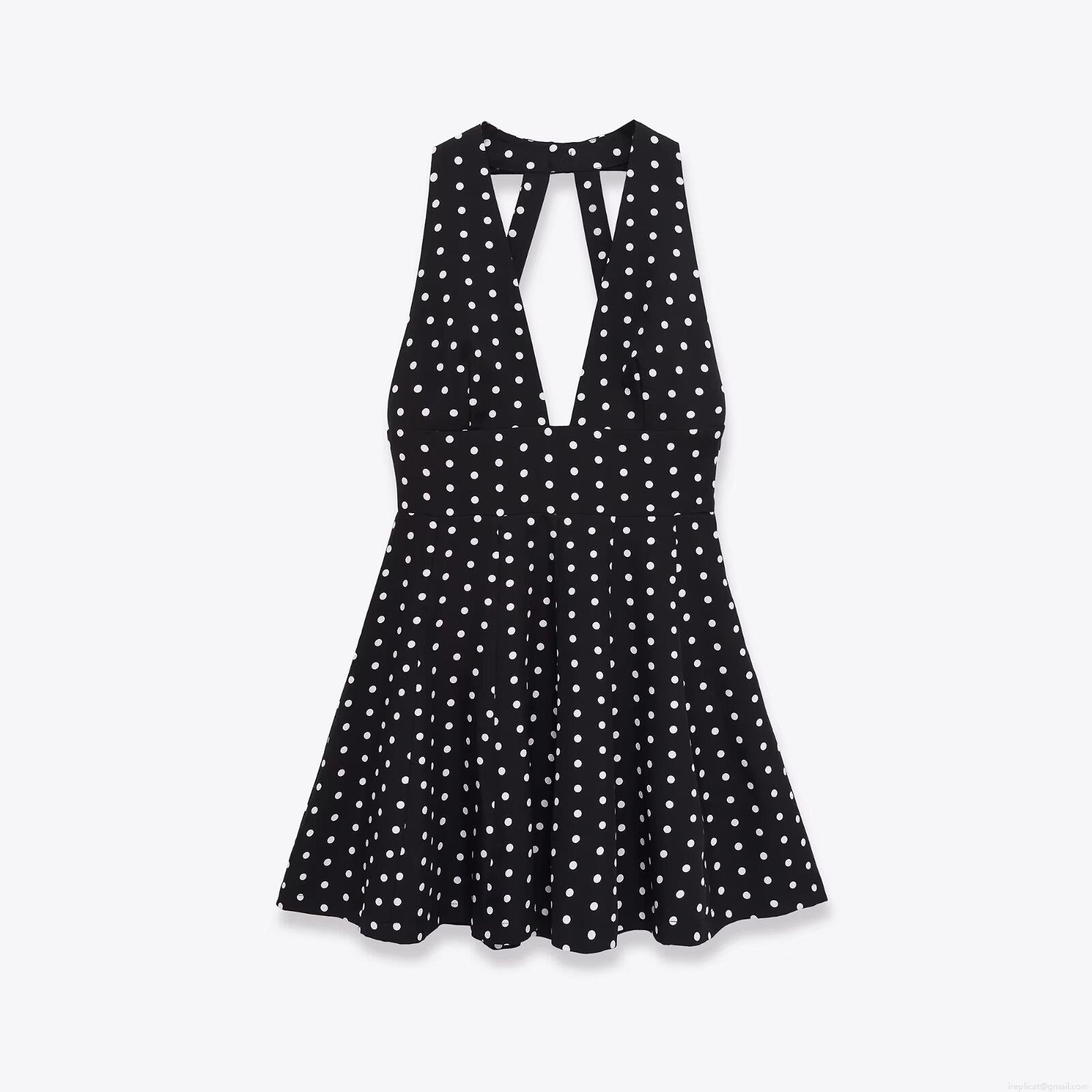• Women's Sexy V-Neck Halter Polka Dot Mini Dress Polyester Sleeveless Hollow Out Backless A-Line Short Dress for Party Summer Club Elegant Fashion Dress