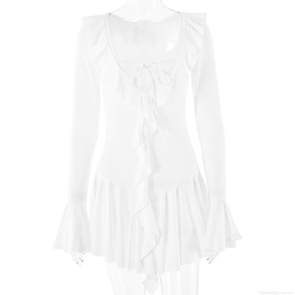 • Women's Sexy V-Neck Long Sleeve Mini Dress Ruffle Splicing Tie-Up Milk Silk Polyester Flare Sleeve Bodycon Dress For Party Vacation Clubwear