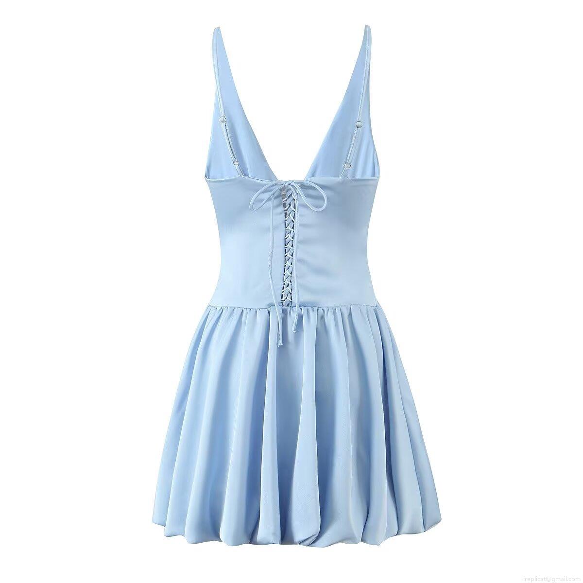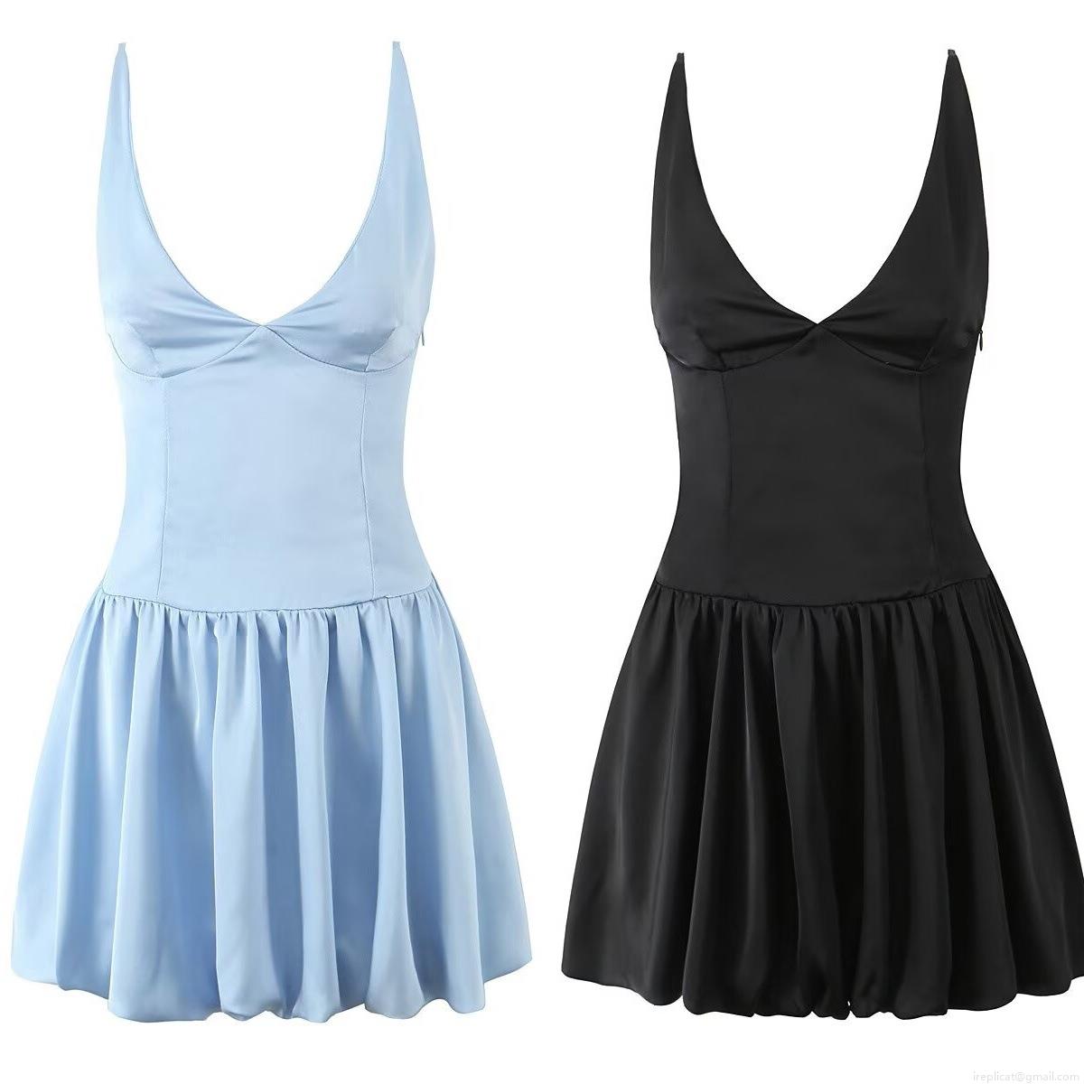 • Women's Sexy V-Neck Satin Camisole Dress Backless Lace-up Pleated Mini A-Line Dress Sleeveless Solid Color 100% Polyester Night Out Clubwear Party Dress