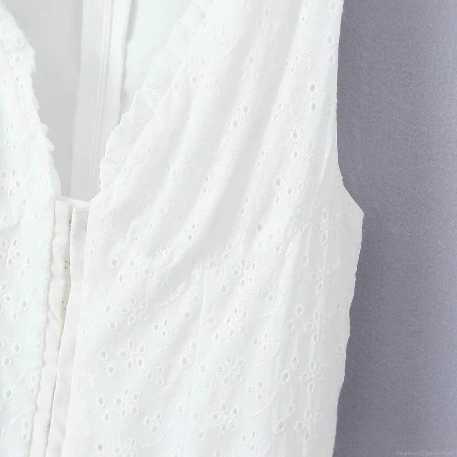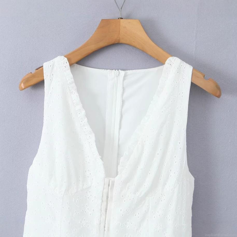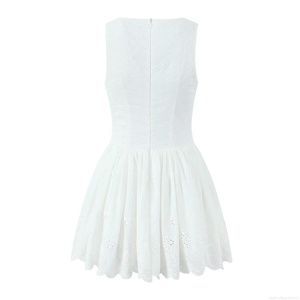 • Women's Sexy V-Neck Sleeveless A-Line Mini Dress 100% Cotton Hollow Out Embroidery Eyelet Dress For Summer Vacation Beach Party Solid White Back Zipper Dress