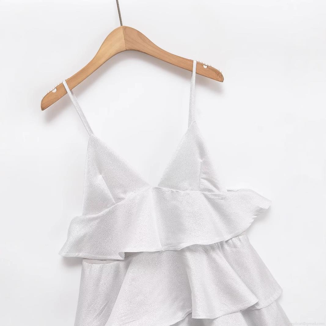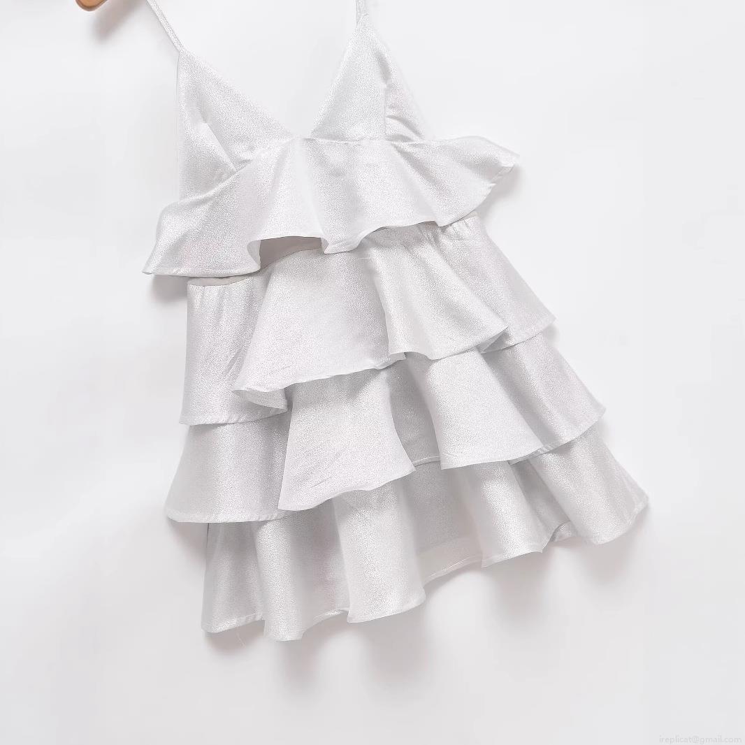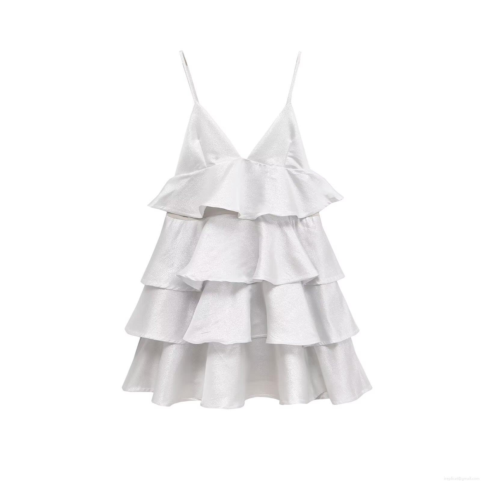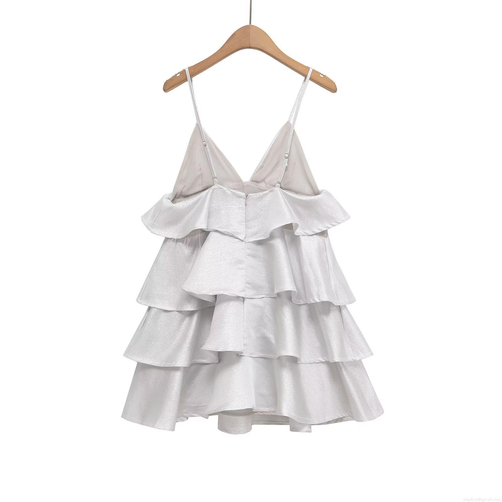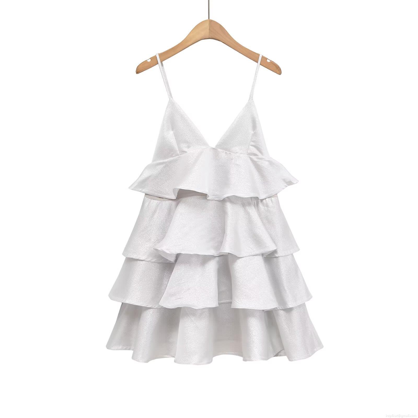 Solid Color, Ruffles, V-neck, Cake Skirt, Thin Straps