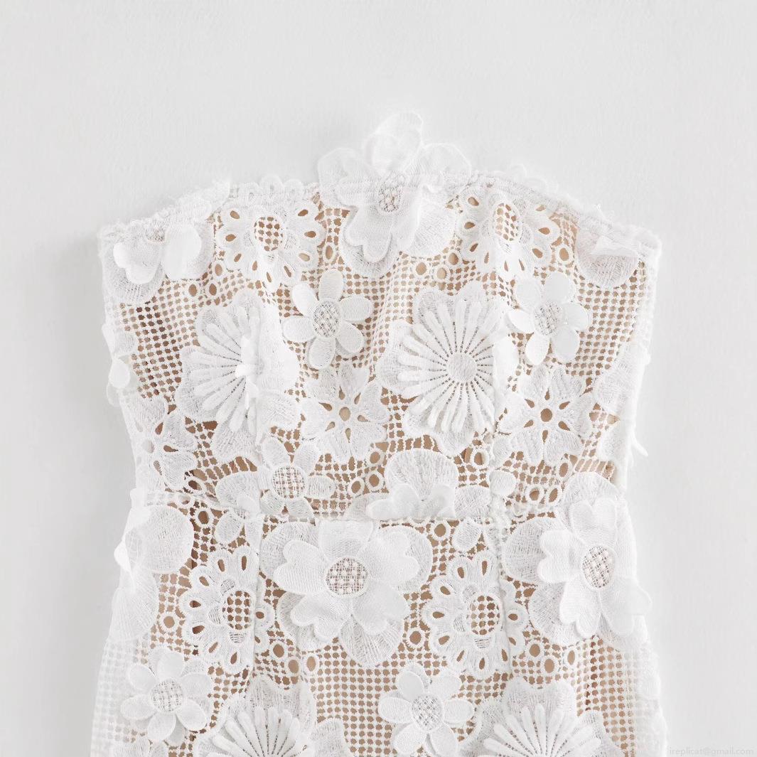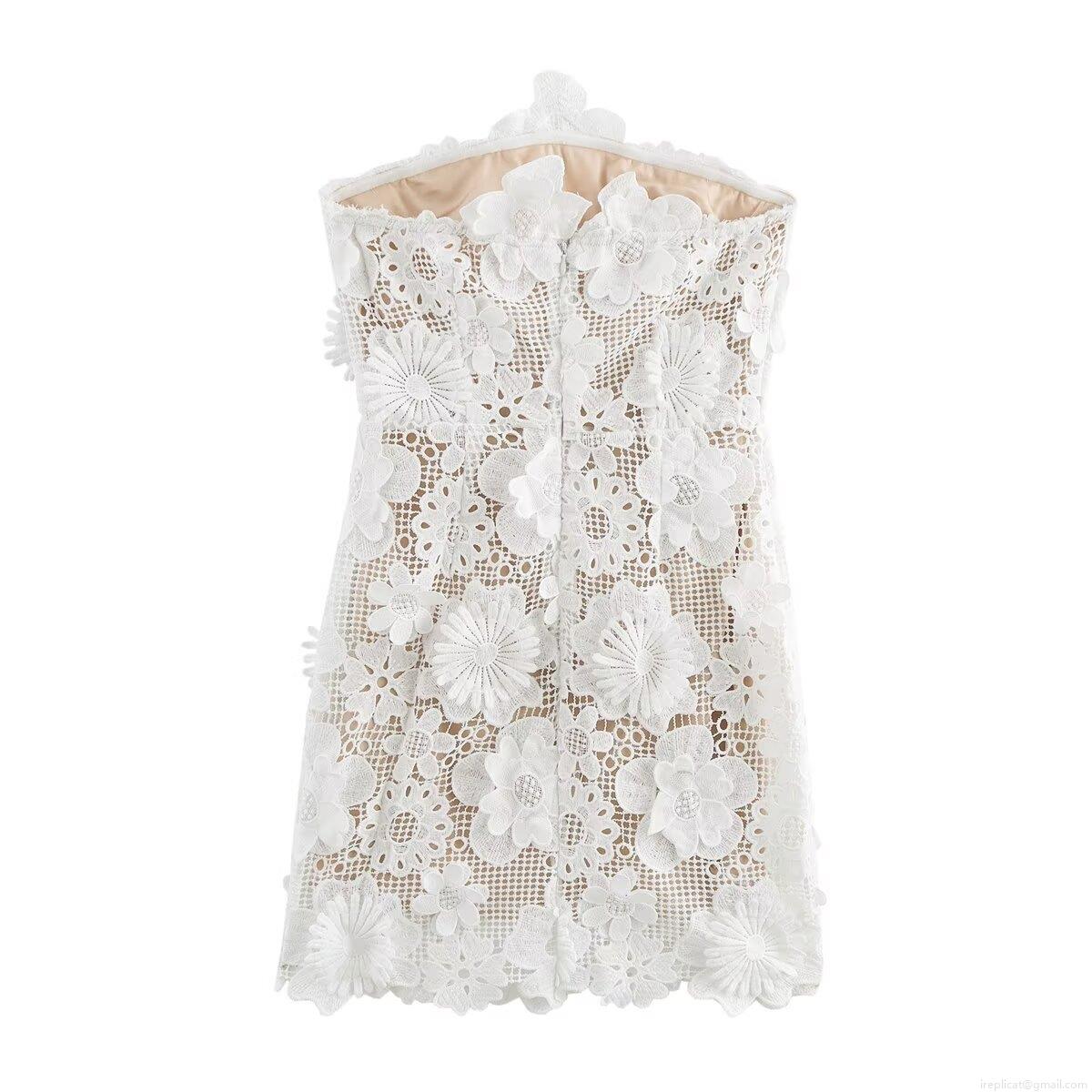 • Women's Sexy White Lace 3D Floral Mini Dress Strapless Sleeveless Elegant Bodycon Party Club Short Dress With Lining