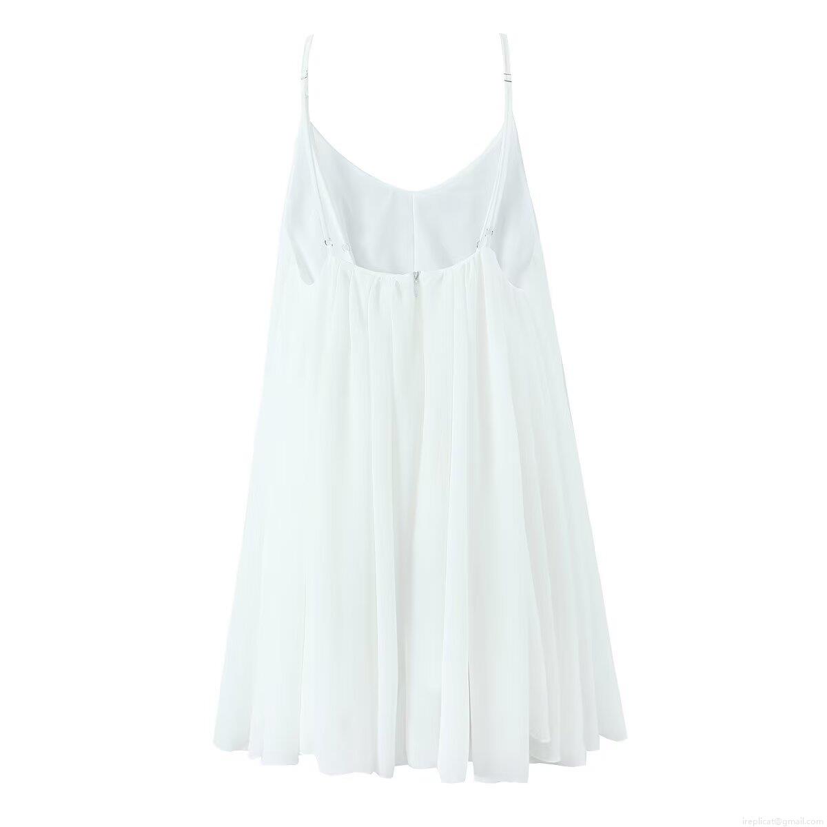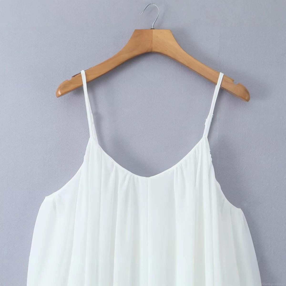 • Women's Sexy White V-Neck Spaghetti Strap Mini Dress Summer Pleated Chiffon A-Line Sundress For Vacation Party Elegant Sleeveless Short Dress