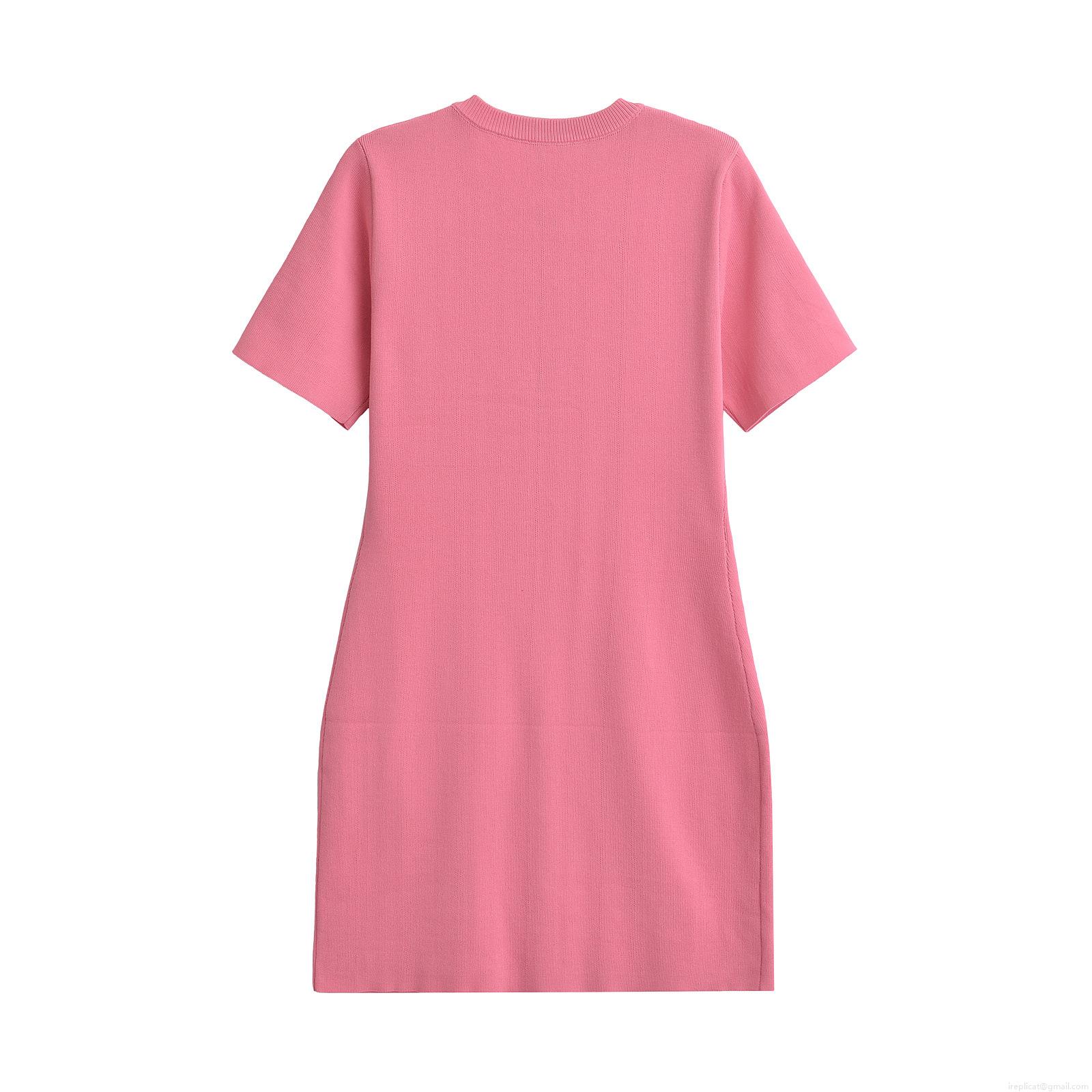 • Women's Short Sleeve Knit Mini Dress Elegant Gold Button Decoration Single Breasted Bodycon Dress With Four Decorative Pockets Summer Casual Chic Party Dress