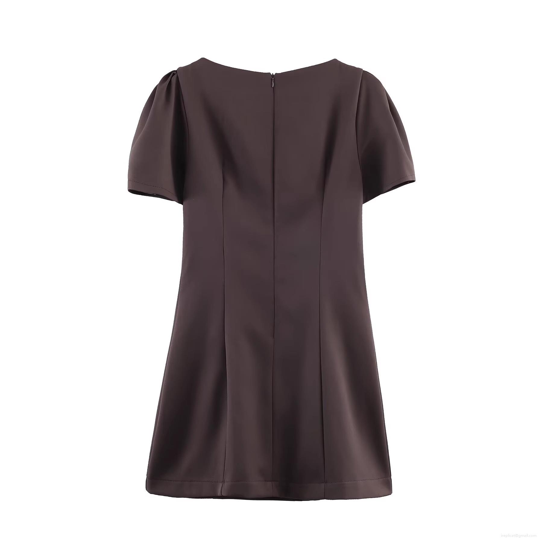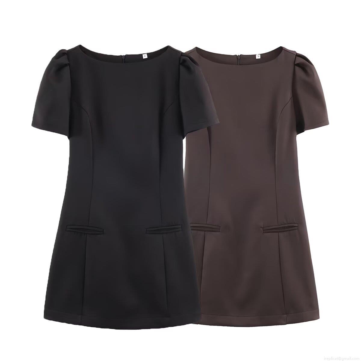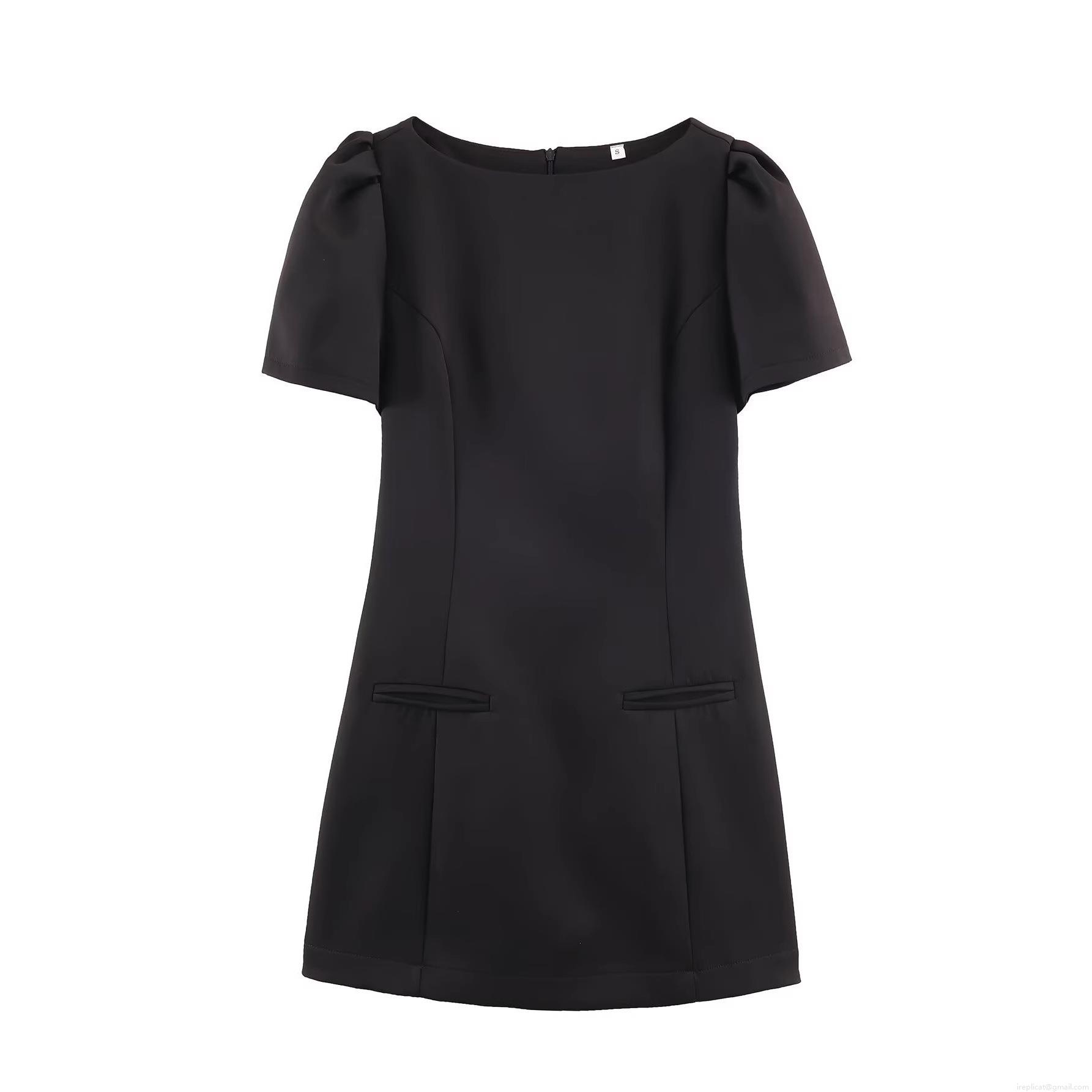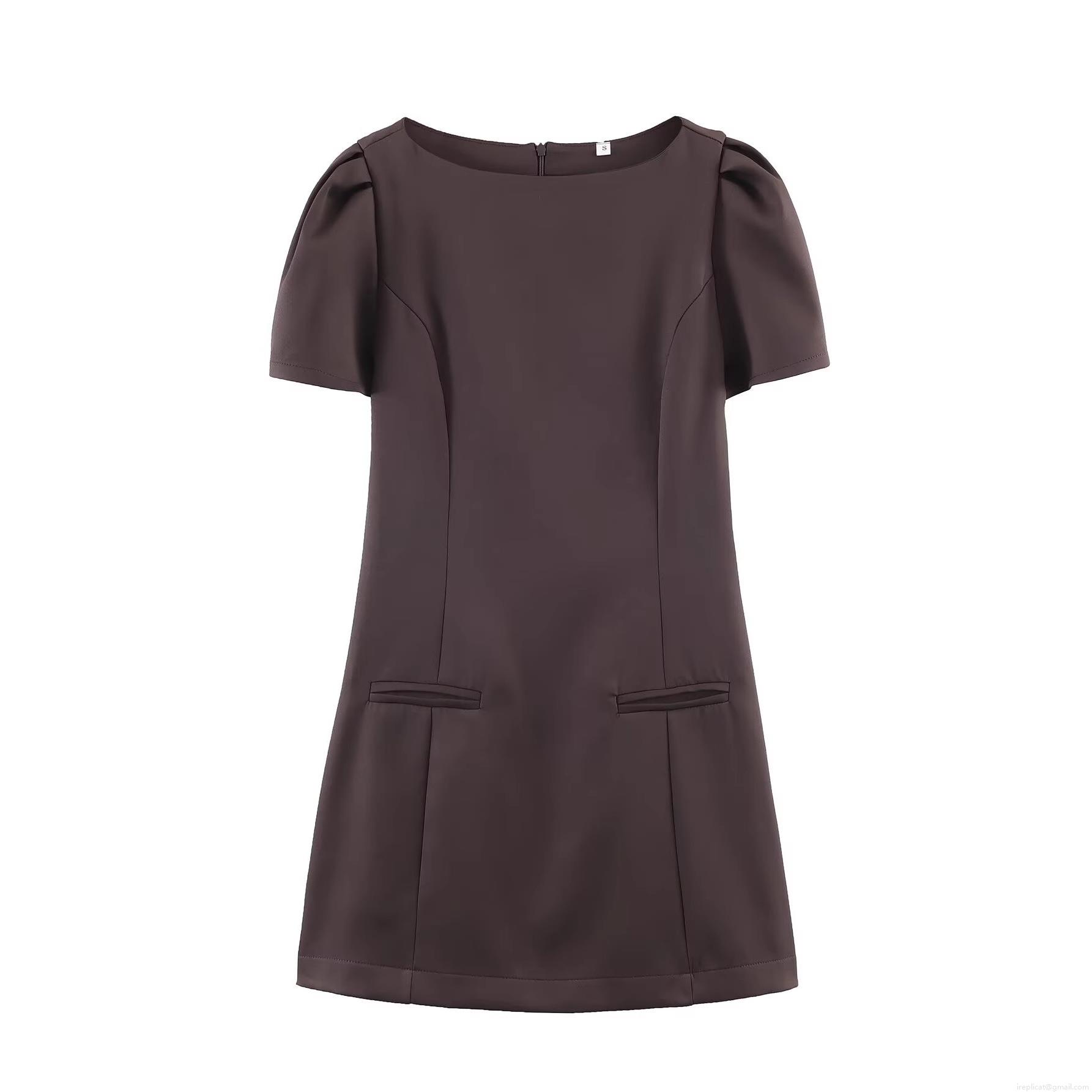 • Women's Short Sleeve Mini Dress Elegant Round Neck Pleated Polyester Casual Bodycon Dress With Pockets For Women Ladies Daily Fashion Outfit