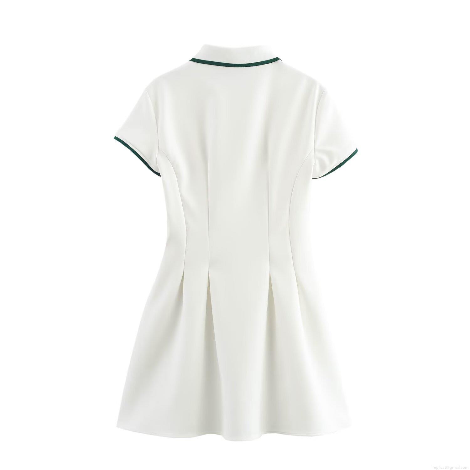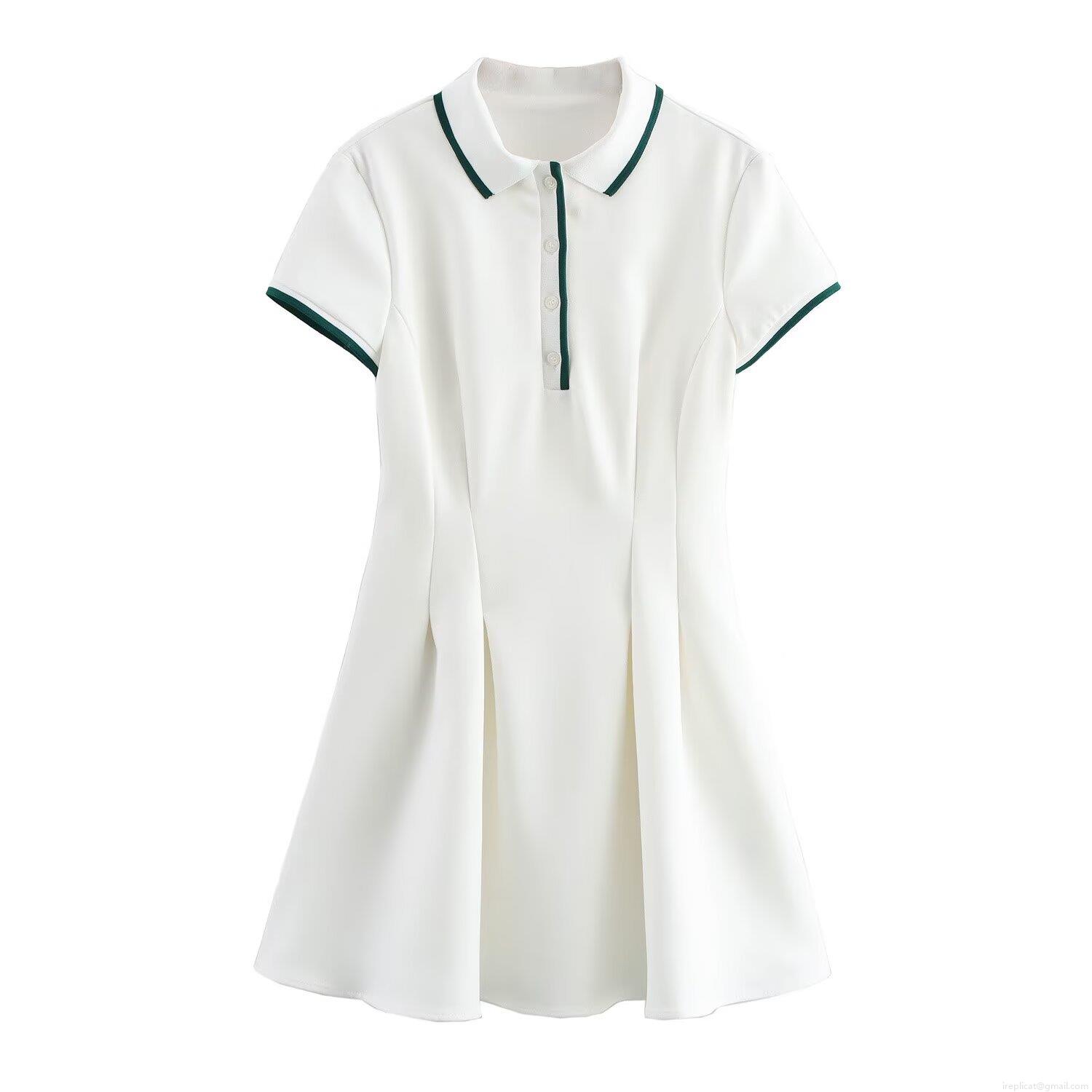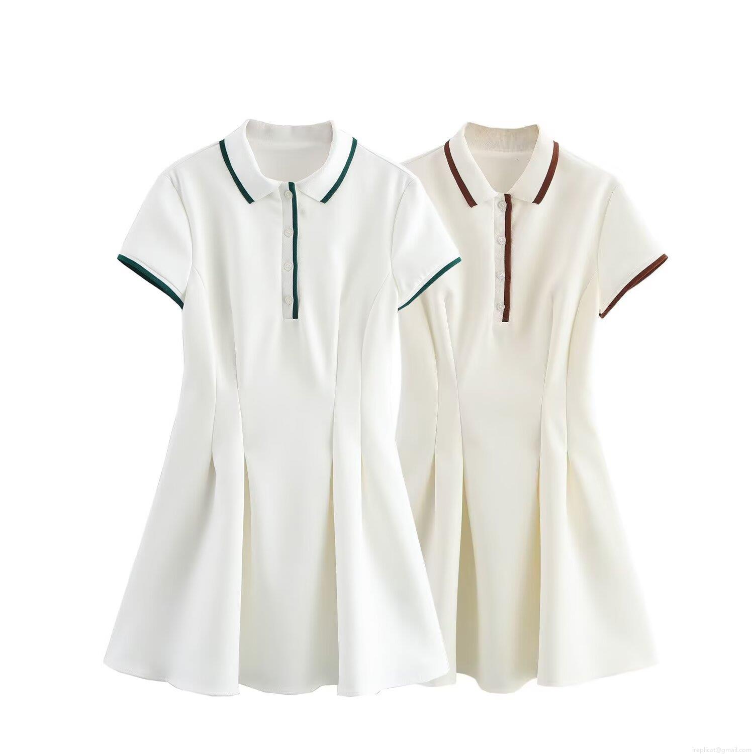 • Women's Short Sleeve Polo Dress Contrast Trim Pleated A-Line Mini Dress Casual Sporty Preppy Style Tennis Dress Polyester Knit Short Dress for Women