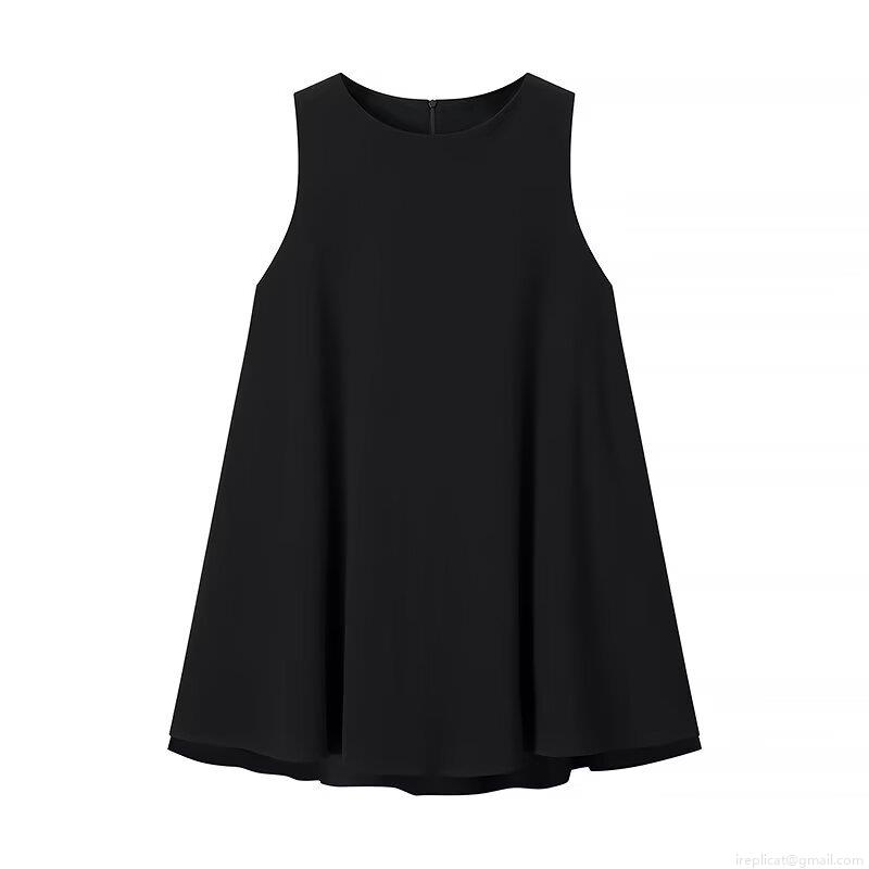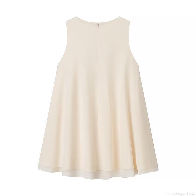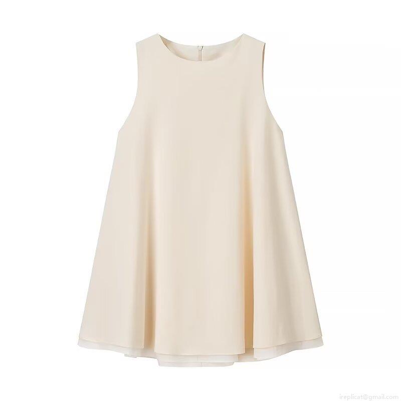 • Women's Sleeveless A-Line Mini Dress Elegant Polyester Double Layered Hem Crew Neck Back Zipper Loose Party Dress For Ladies