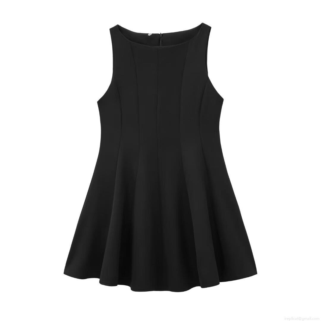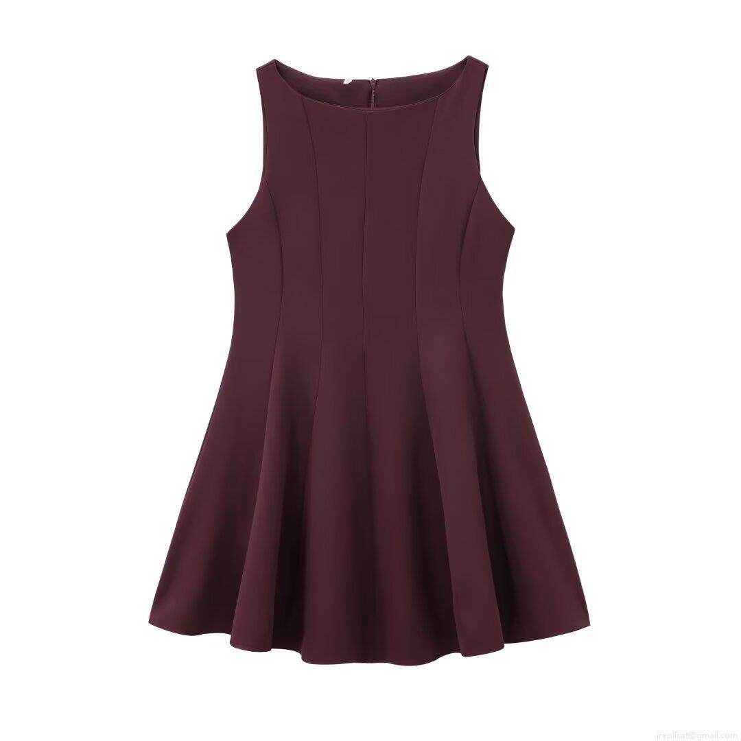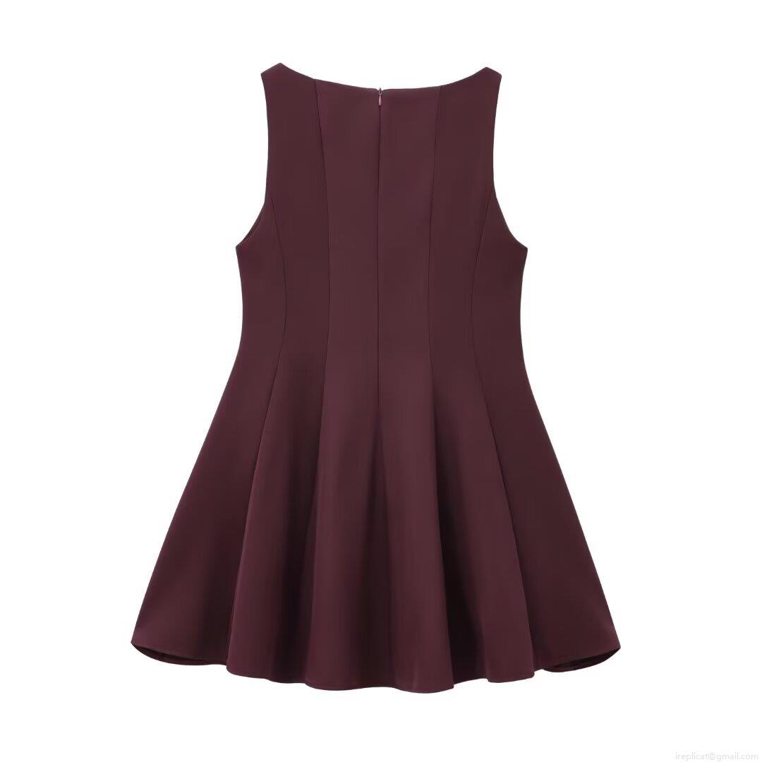 • Women's Sleeveless A-Line Mini Dress Solid Color Pleated Round Neck Polyester Dress Elegant Streetwear Party Dress for Women
