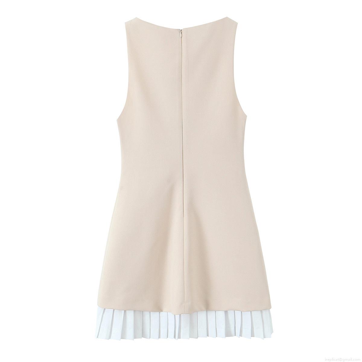 • Women's Sleeveless A-Line Mini Dress With Pleated Hem Color Block Crew Neck Elegant Structured Woven Fabric Back Zipper Summer Fashion Short Dress