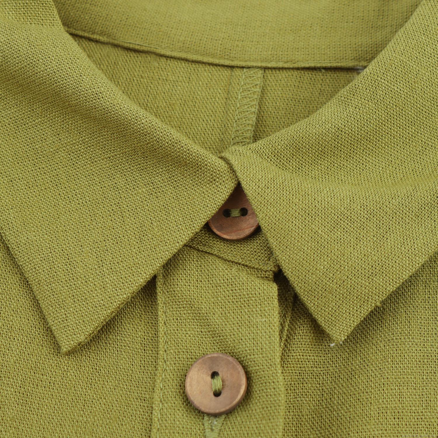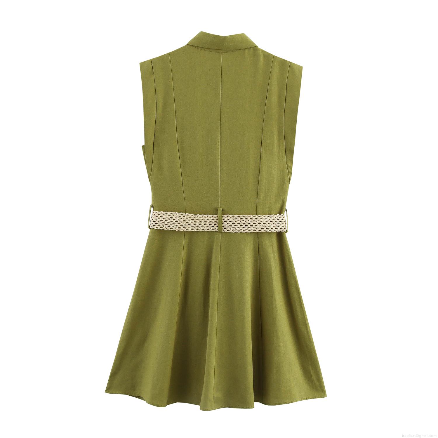 • Women's Sleeveless A-Line Mini Dress With Woven Belt Olive Green Linen Blend Lapel Button Down Retro Casual Elegant Summer Vacation Short Dress