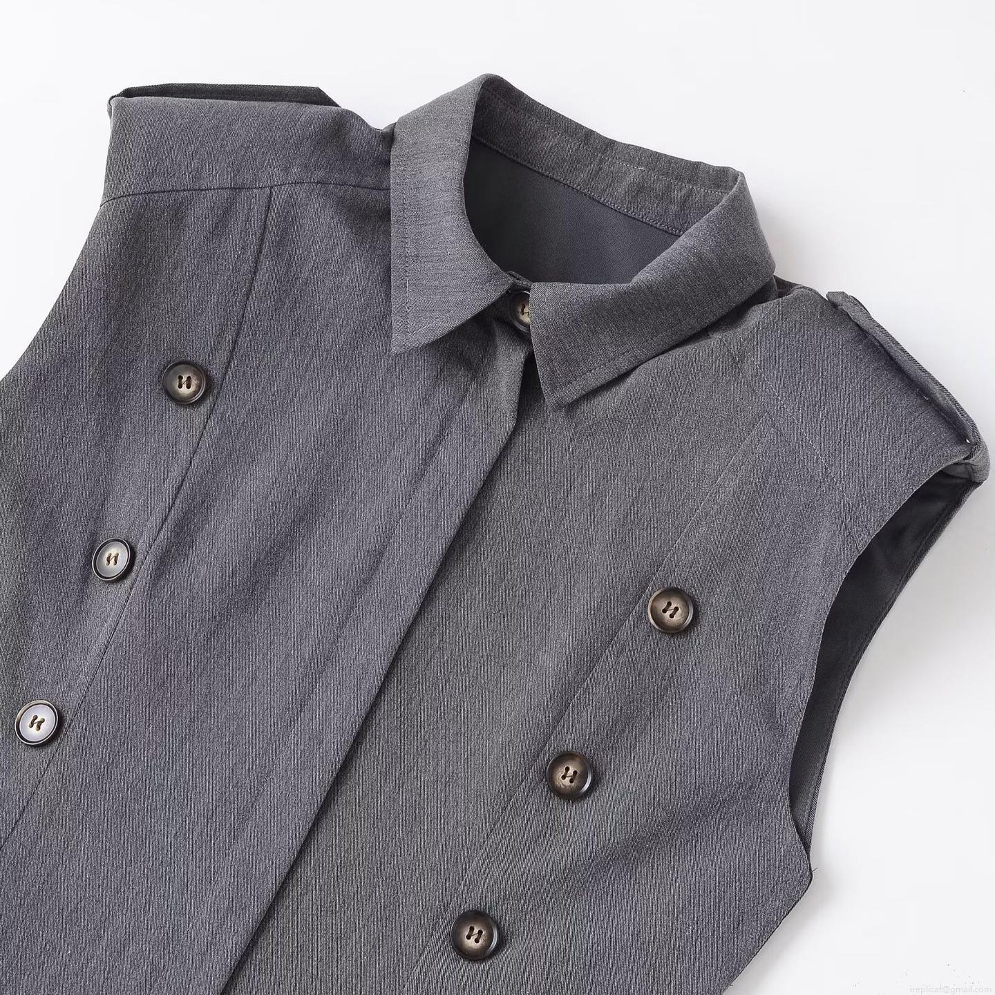 Women's Sleeveless Blazer Dress Double Breasted Lapel Mini Dress With Peplum Hem Elegant British Style Dark Grey Office Lady Bodycon Party Short Dress