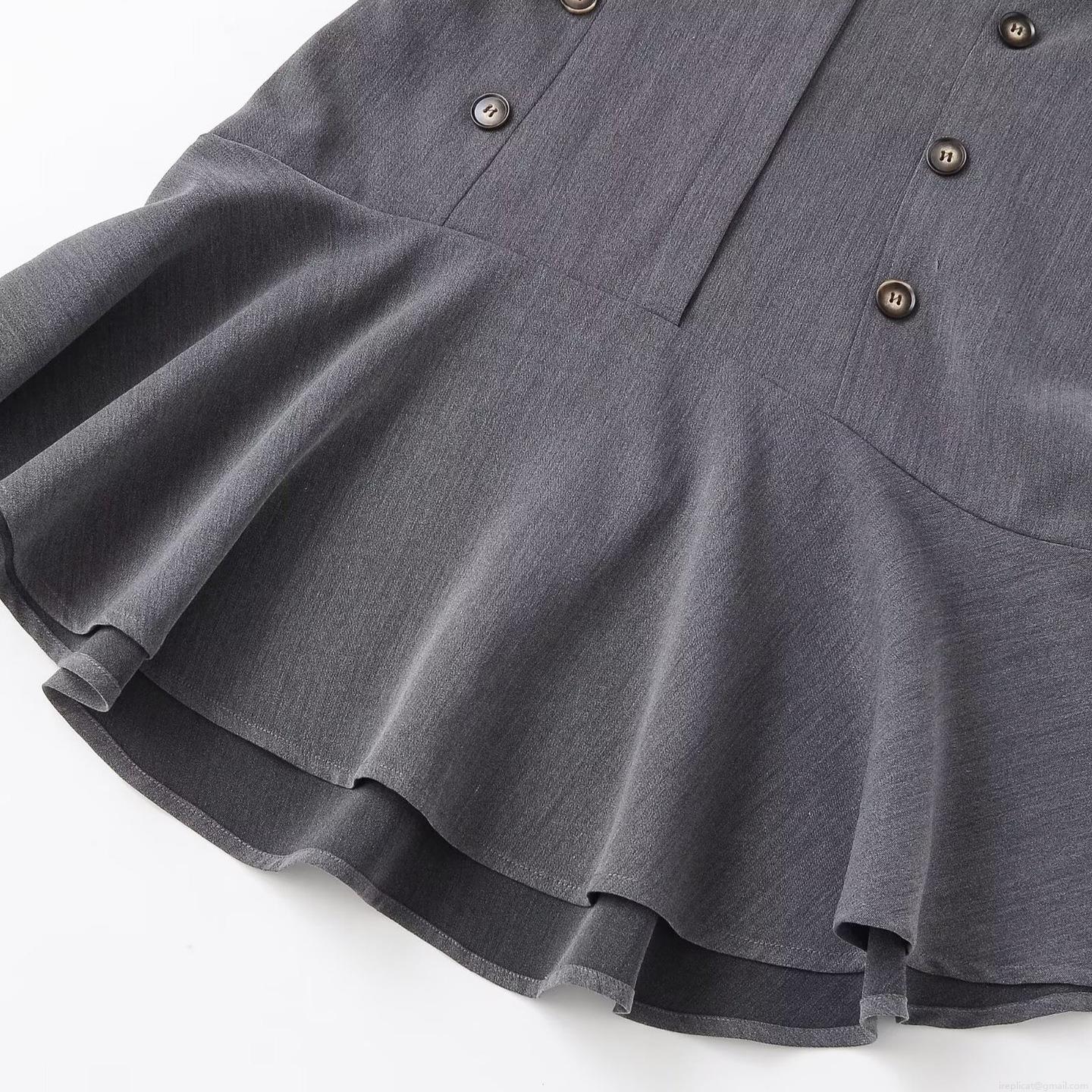 Solid Color, Shoulder Epaulettes, Lapel, Double-breasted, Ruffled Hem