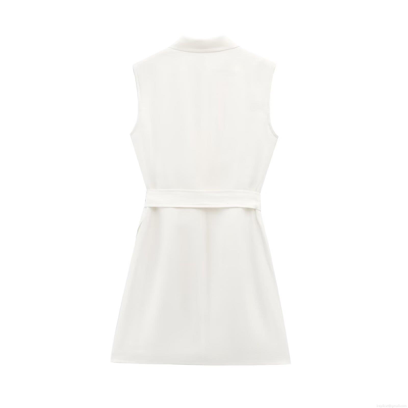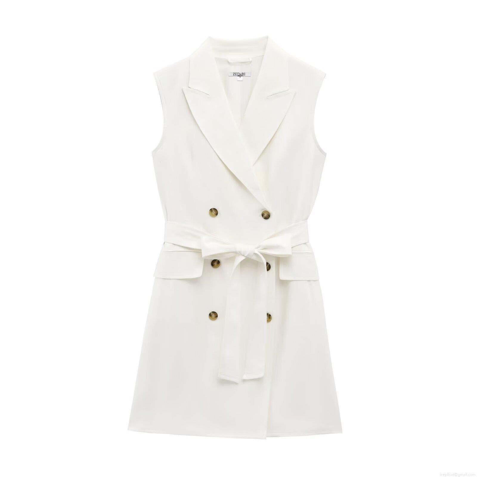 • Women's Sleeveless Blazer Dress Elegant Tencel Linen Blend Double Breasted A-Line Mini Dress With Belt Fashionable Streetwear Office Lady Short Dresses