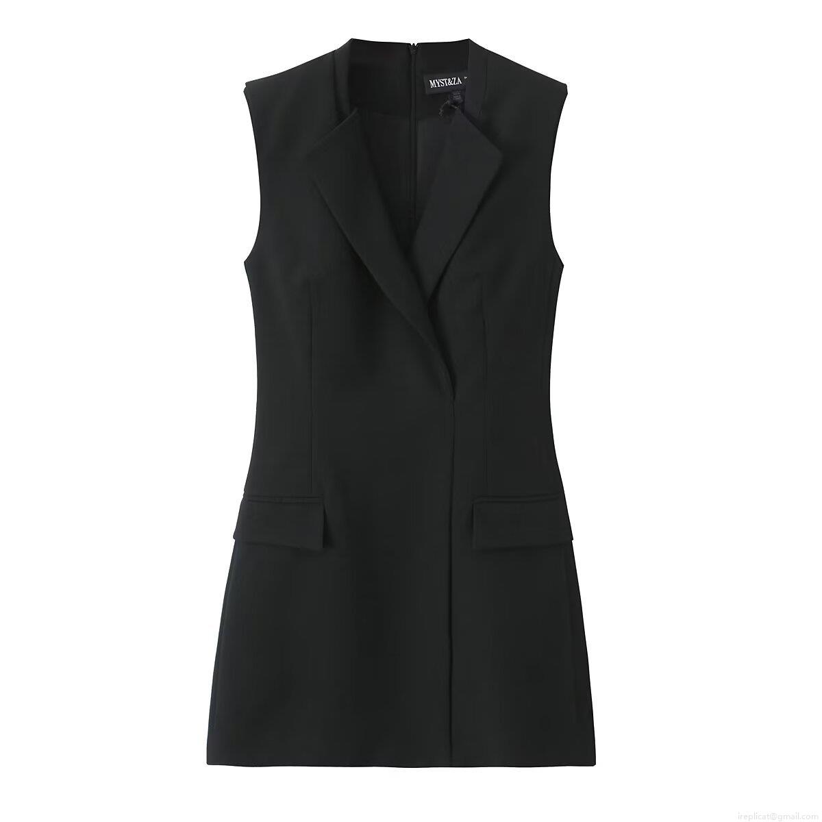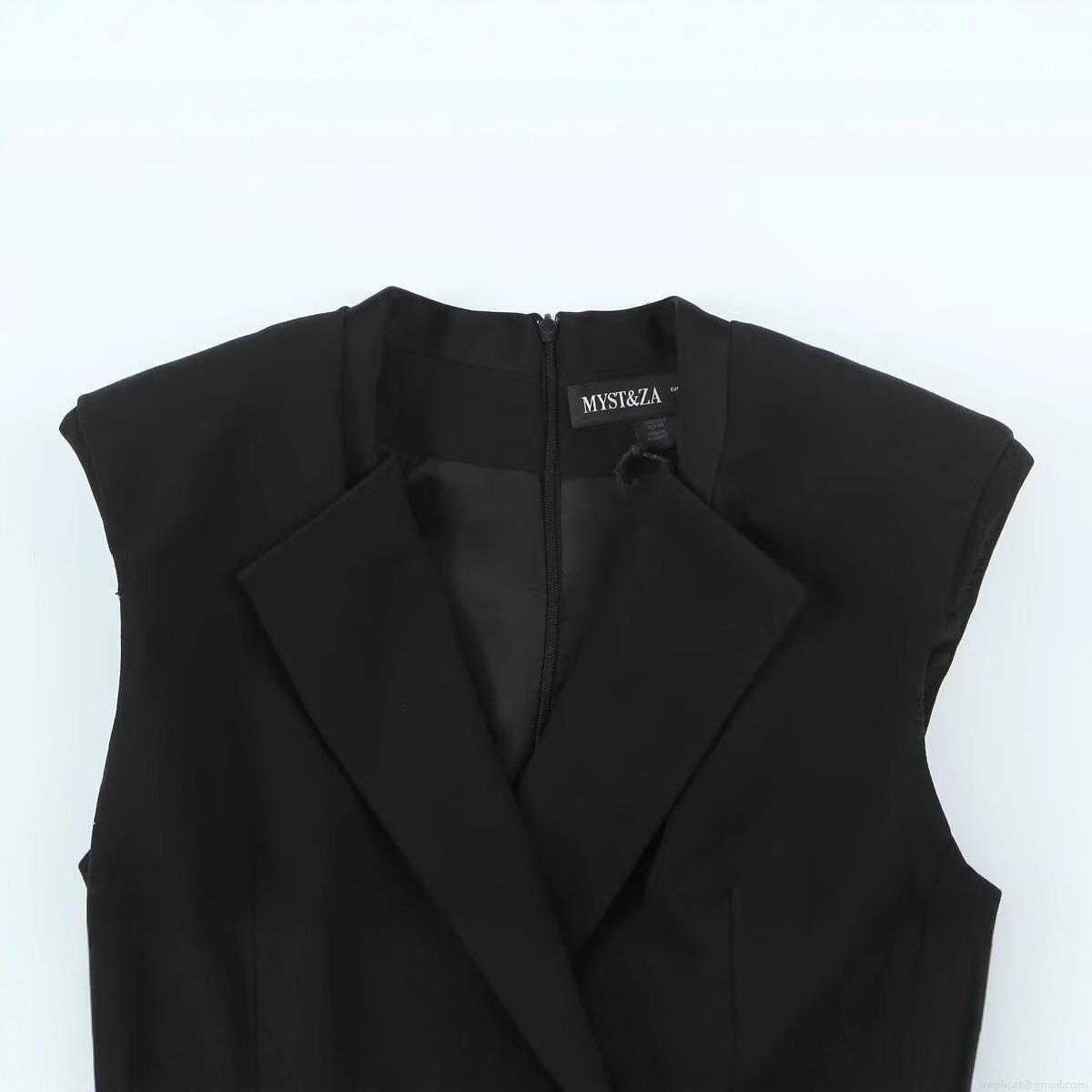 • Women's Sleeveless Blazer Mini Dress Elegant V Neck Shoulder Pad Slim Fit Short Vest Dress Formal Party Wear Sophisticated Black Solid Woven Dress