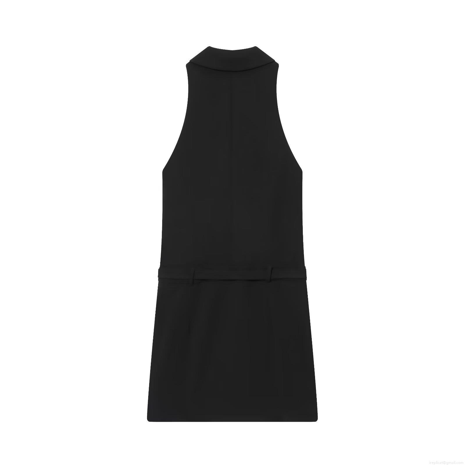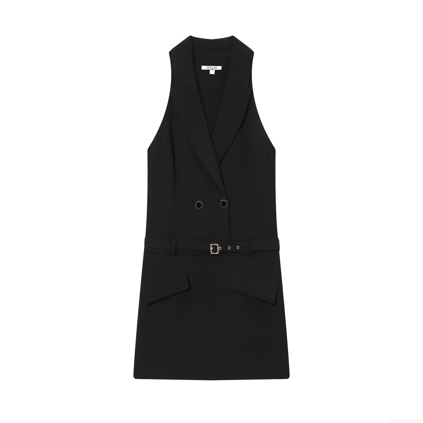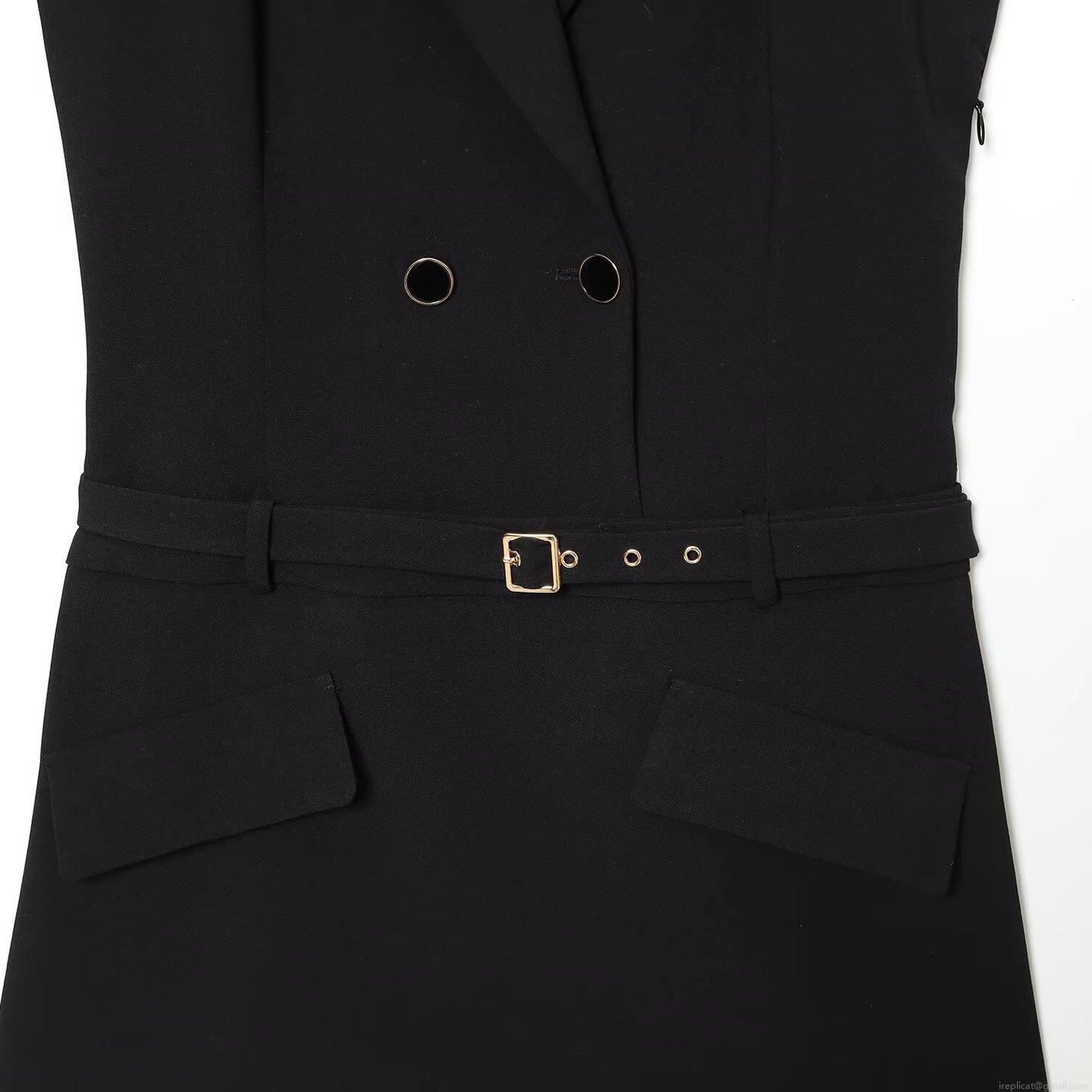 • Women's Sleeveless Blazer Mini Dress With Gold Buckle Belt Elegant Double Breasted Office Party Slim Fit Bodycon Vest Dress Solid Color Lapel V-Neck Polyester Chic Ladies Short Dress