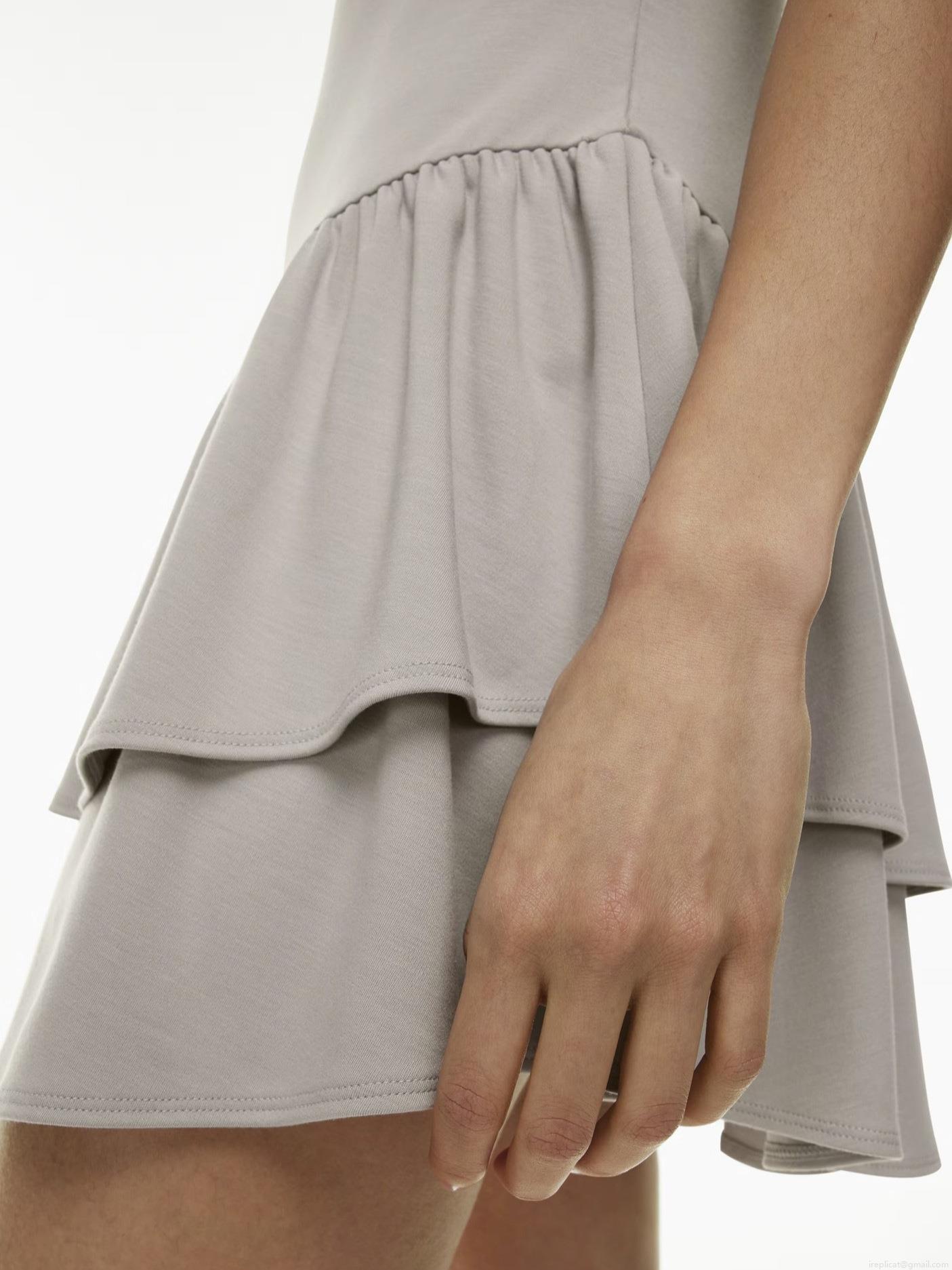 • Women's Sleeveless Boat Neck Mini Dress Elegant Ruffled Hem Tiered Plain Jersey Polyester Spandex Solid Color Summer Beach Vacation Short Dress