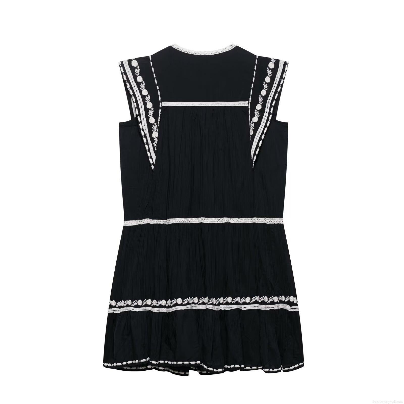 • Women's Sleeveless Bohemian Dress Contrast Color Floral Embroidery Lace Trim Tiered Mini Dress Elegant Ethnic Style Summer Vacation Beach Party Dresses