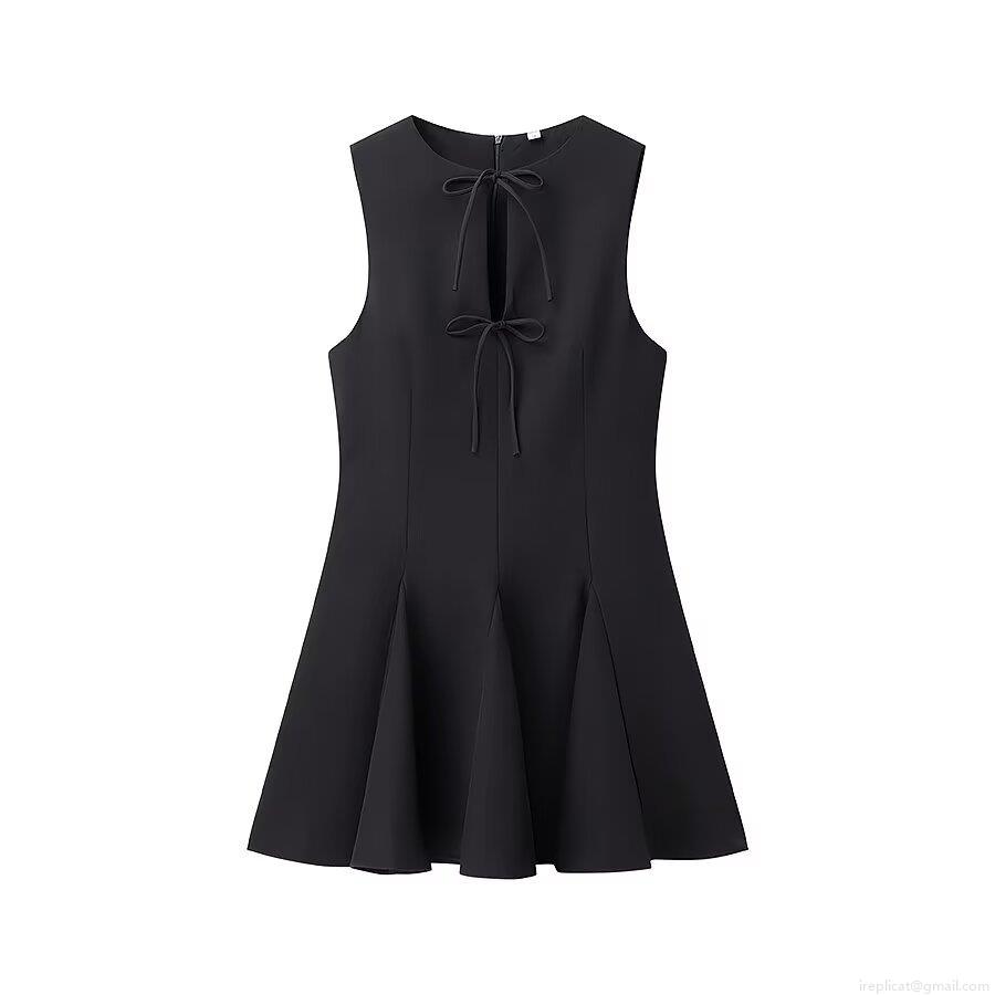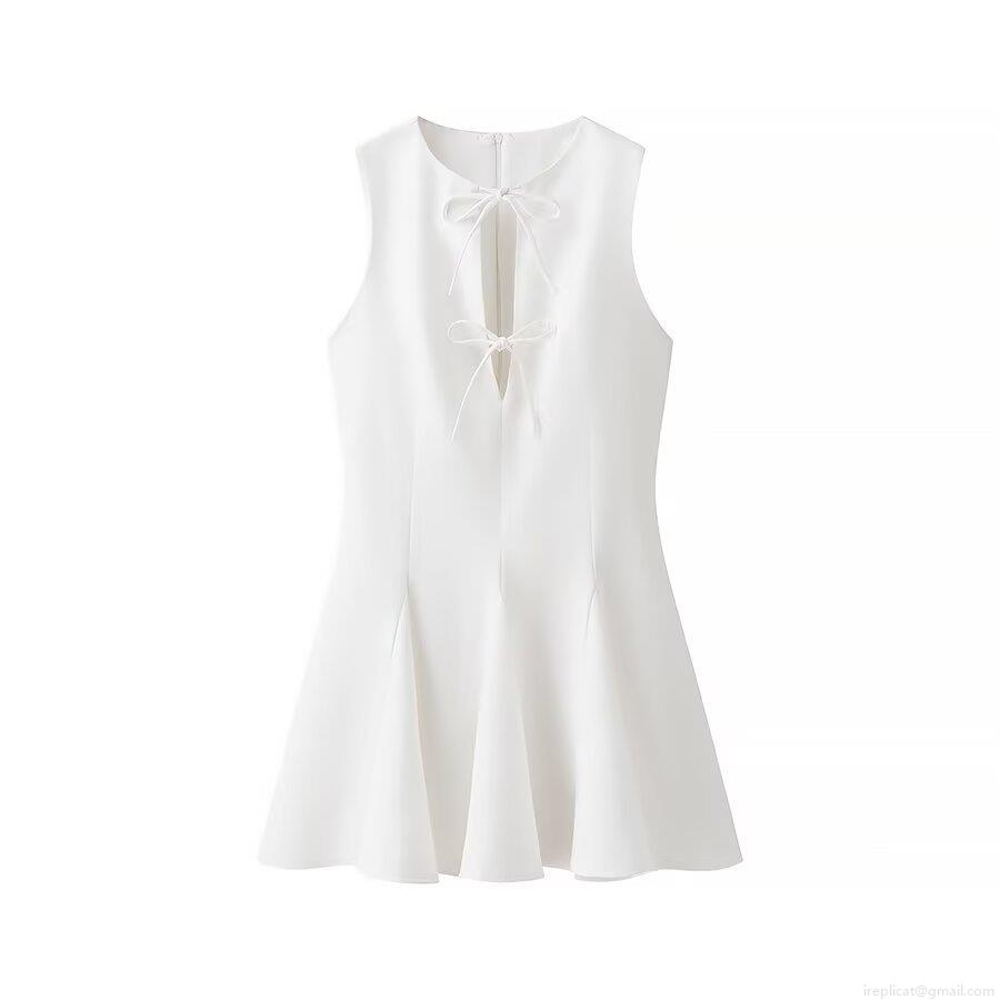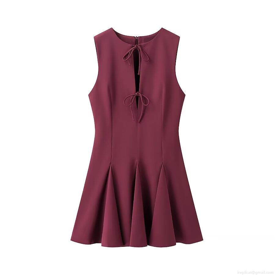 • Women's Sleeveless Bow Tie Front Cut Out Dress Elegant Pleated Ruffle Hem Mini Dress Solid Color Polyester Streetwear Summer Party Bodycon A-Line Dresses for Women