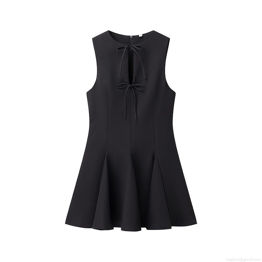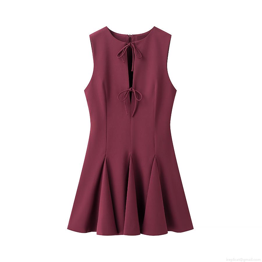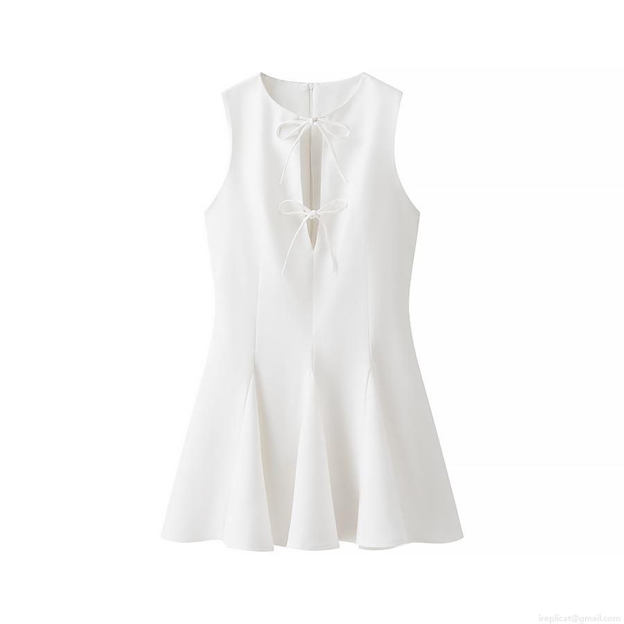• Women's Sleeveless Cutout Bow Tie-up Mini Dress High Waist Pleated A-Line Elegant Polyester Streetwear Party Dress for Ladies