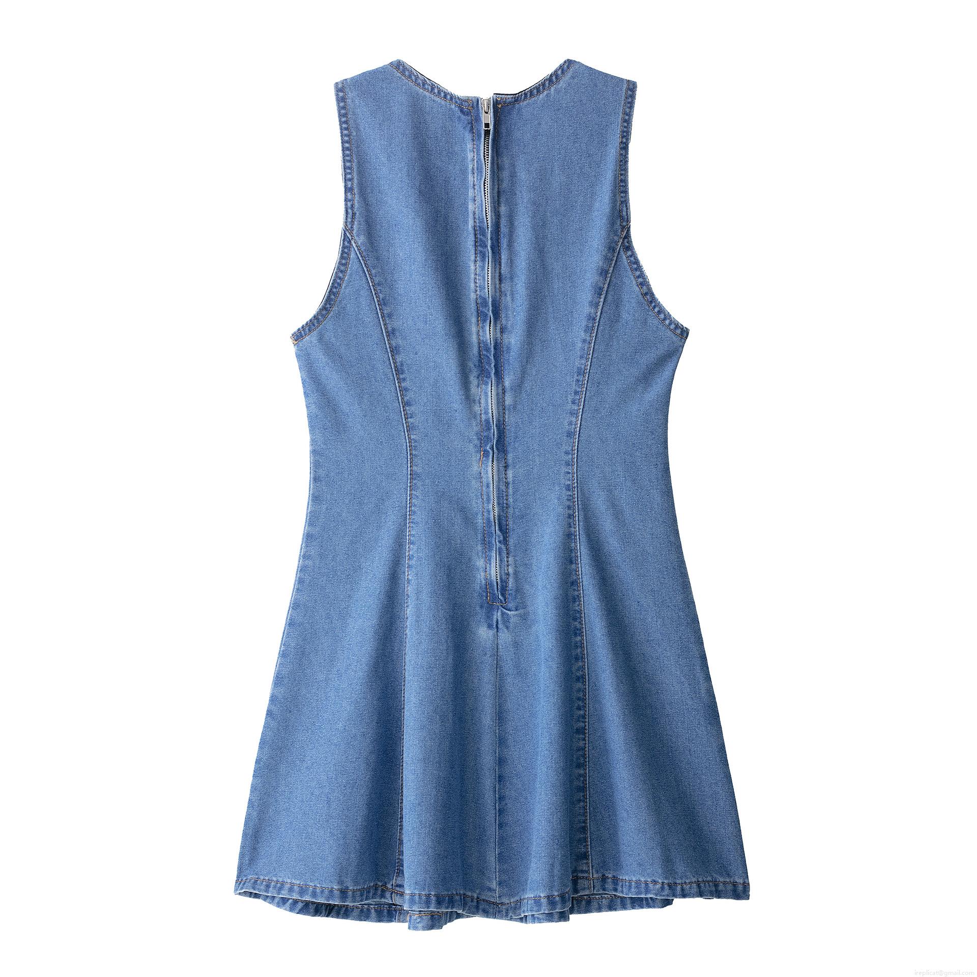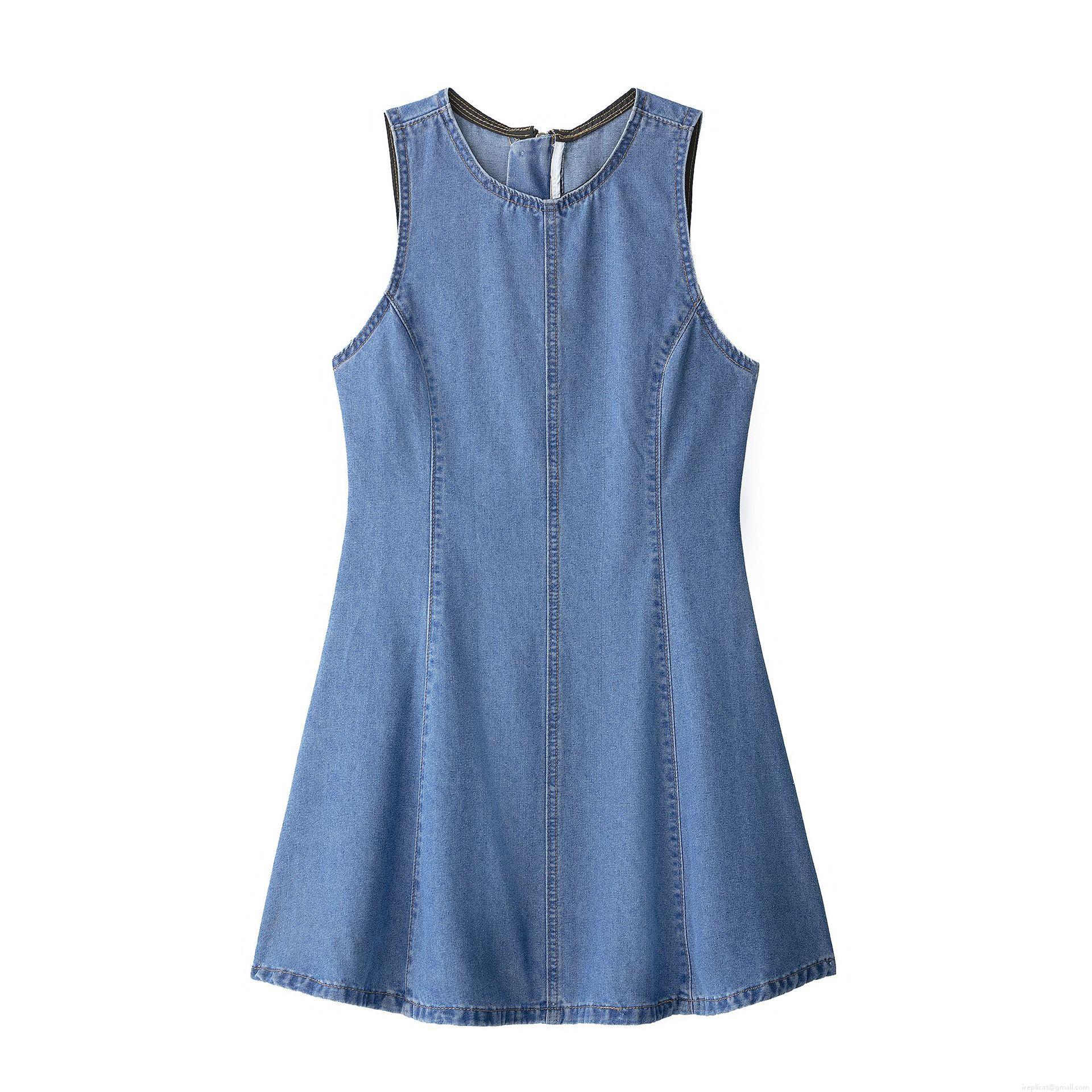 • Women's Sleeveless Denim Mini Dress Summer Round Neck A-Line Jean Vest Dress Western Street Style Casual Solid Blue Back Zipper Dress for Ladies