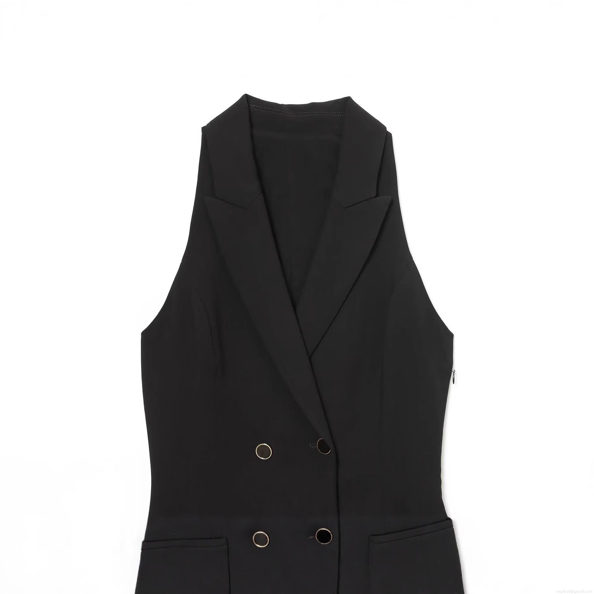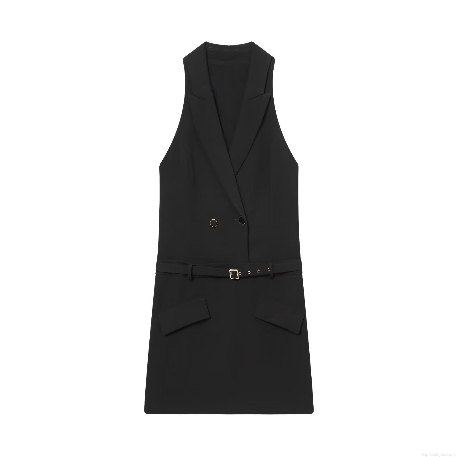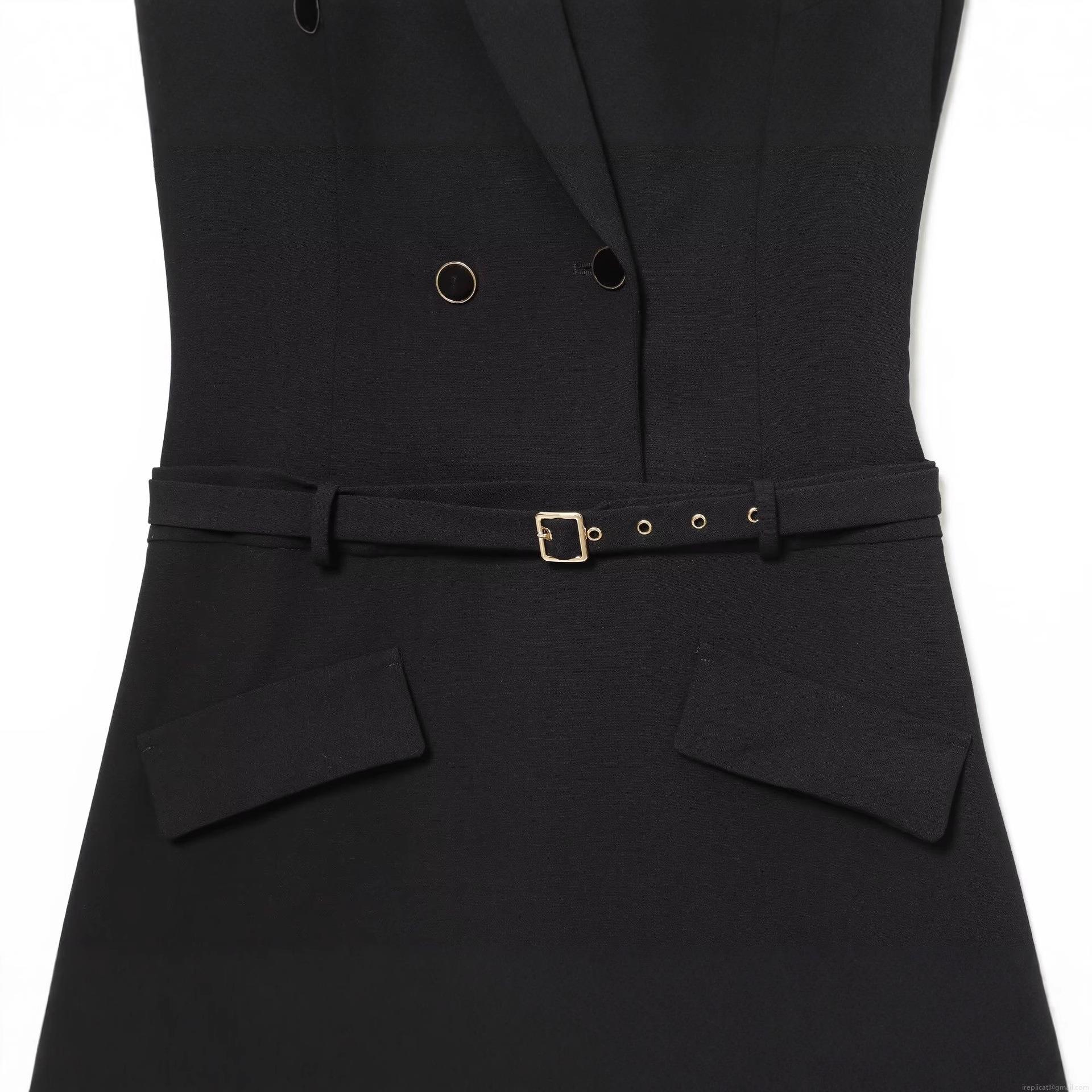 • Women's Sleeveless Double Breasted Blazer Dress With Belt Elegant Solid Black V Neck Mini Suit Dress For Office Party Commuting Elegant Vest Dress