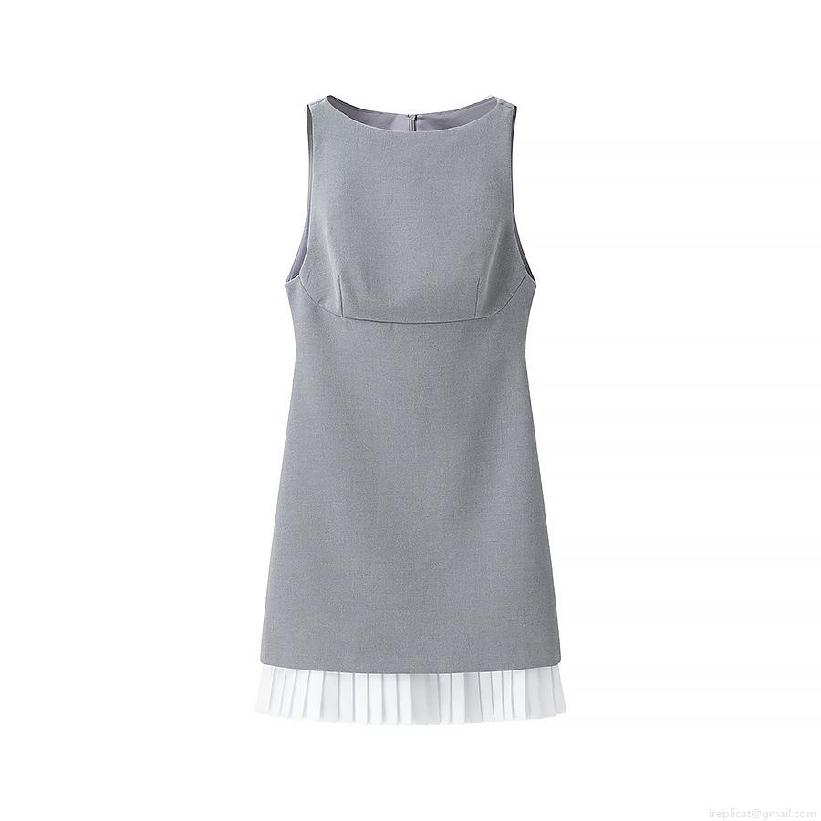 • Women's Sleeveless Fake Two-Piece Mini Dress Polyester Round Neck Contrast White Pleated Hem Gray Tight Bodycon Short Dress For Women Party Dating