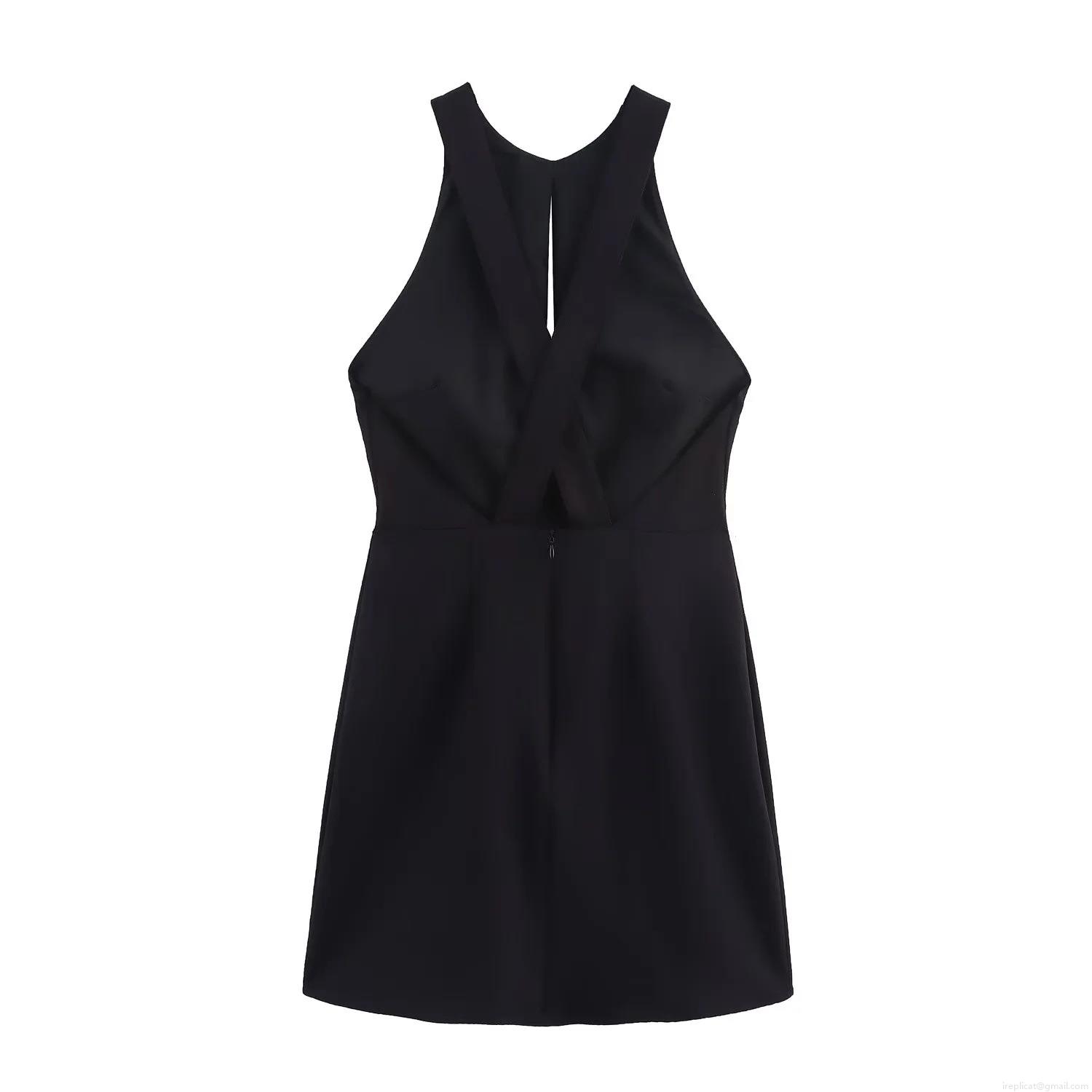 • Women's Sleeveless Halter Mini Dress With Gold Metal Buckle Sexy Bodycon Cut Out Polyester Elegant Slim Fit Party Banquet Evening Short Dress