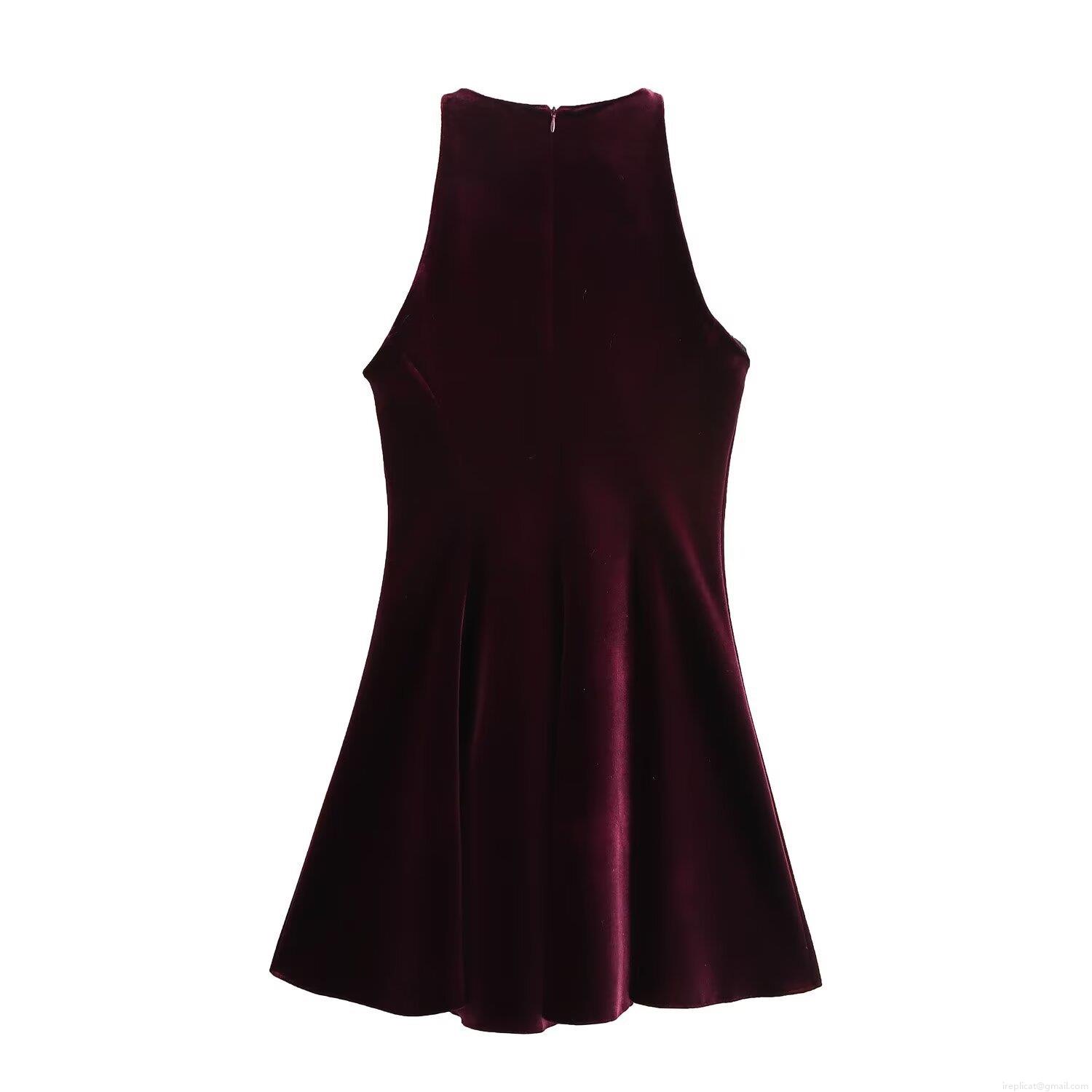 • Women's Sleeveless Halter Neck Velvet Mini Dress Back Zipper A-Line Sexy Elegant Streetwear Clubwear Party Dress For Women