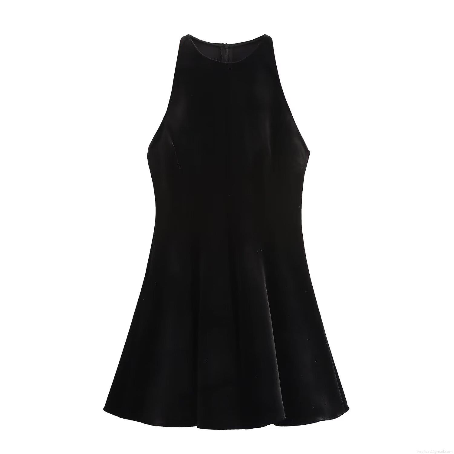 Women's Sleeveless Halter Neck Velvet Mini Dress Back Zipper A-Line Sexy Elegant Streetwear Clubwear Party Dress For Women