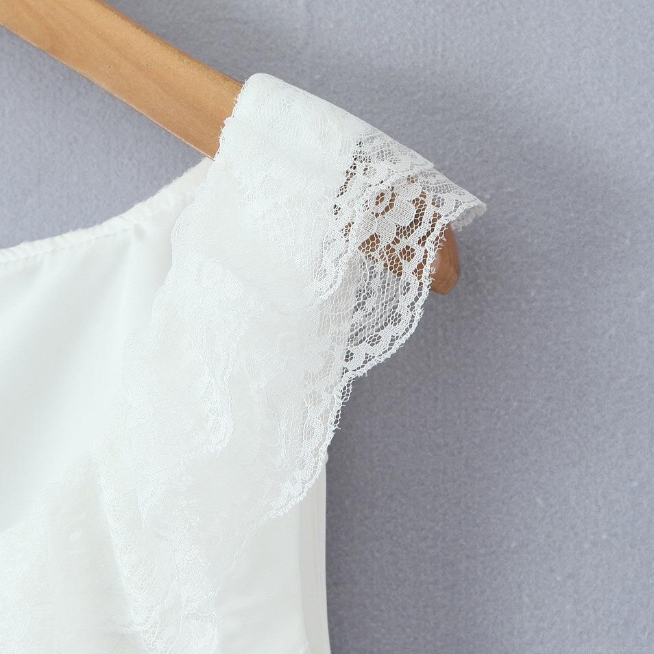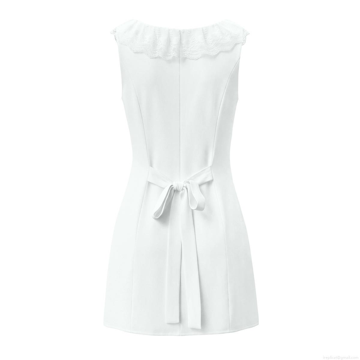 Women's Sleeveless Lace Trim Mini Dress Sweet Back Bow Tie A-Line Party Dress White Polyester Sexy Slim Fit Sundress for Women Lady