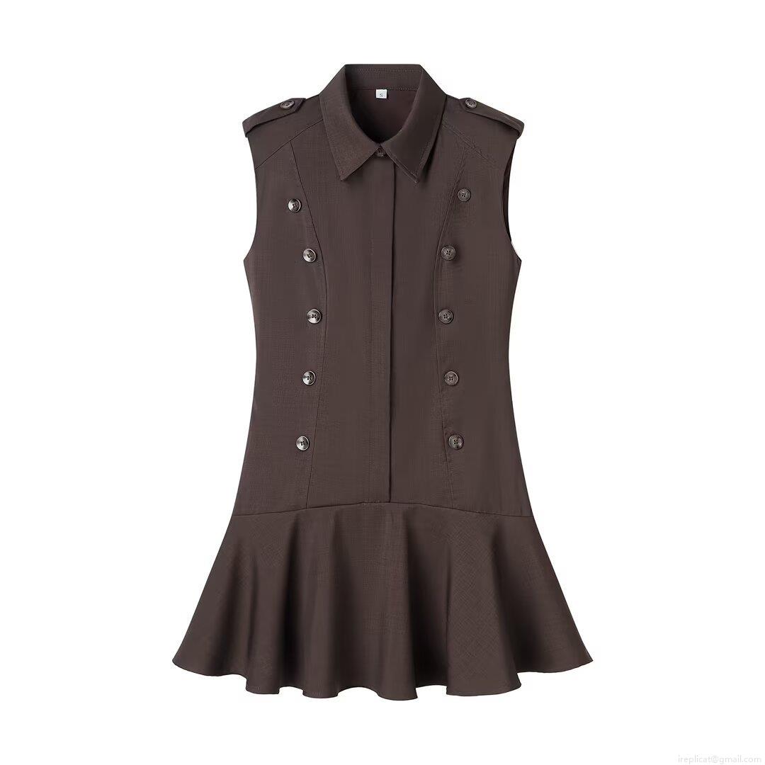 • Women's Sleeveless Lapel Double Breasted Mini Dress Elegant Ruffle Hem Polyester Spandex Bodycon Dress for Party Club Evening Socialite Style