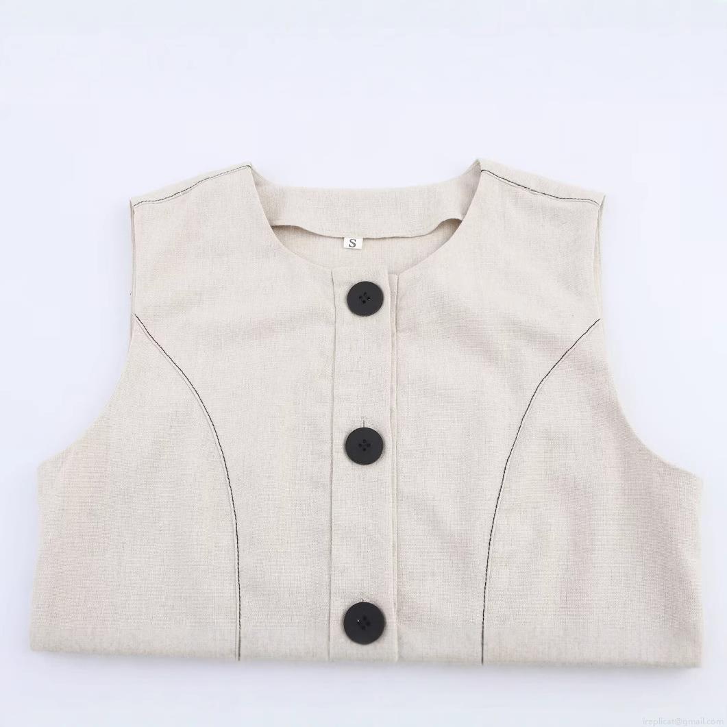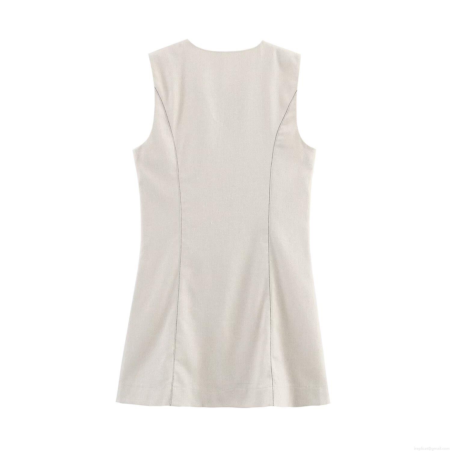 • Women's Sleeveless Linen Blend Mini Dress Single Breasted Round Neck Button Up Solid Color Summer Casual Party Vest Dress For Women Fashionable Elegant Slim Fit