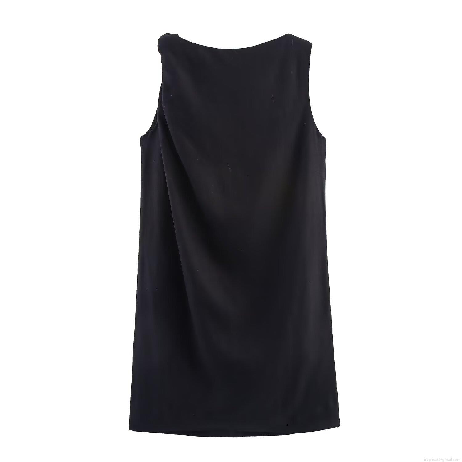 • Women's Sleeveless Linen Polyester Mini Dress Knot Pleated Detail Round Neck Elegant Solid Color Short Dress for Summer Party Dating