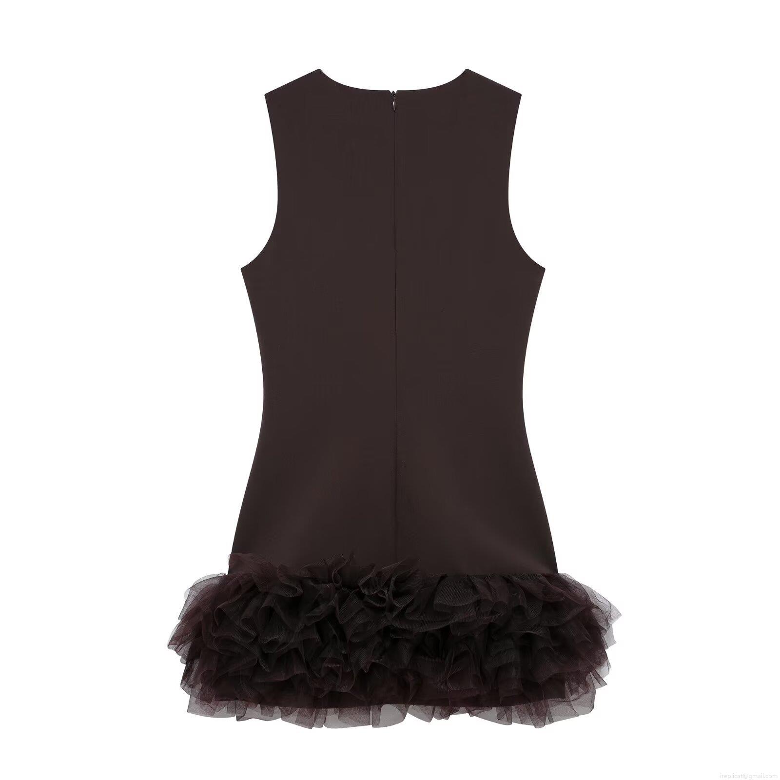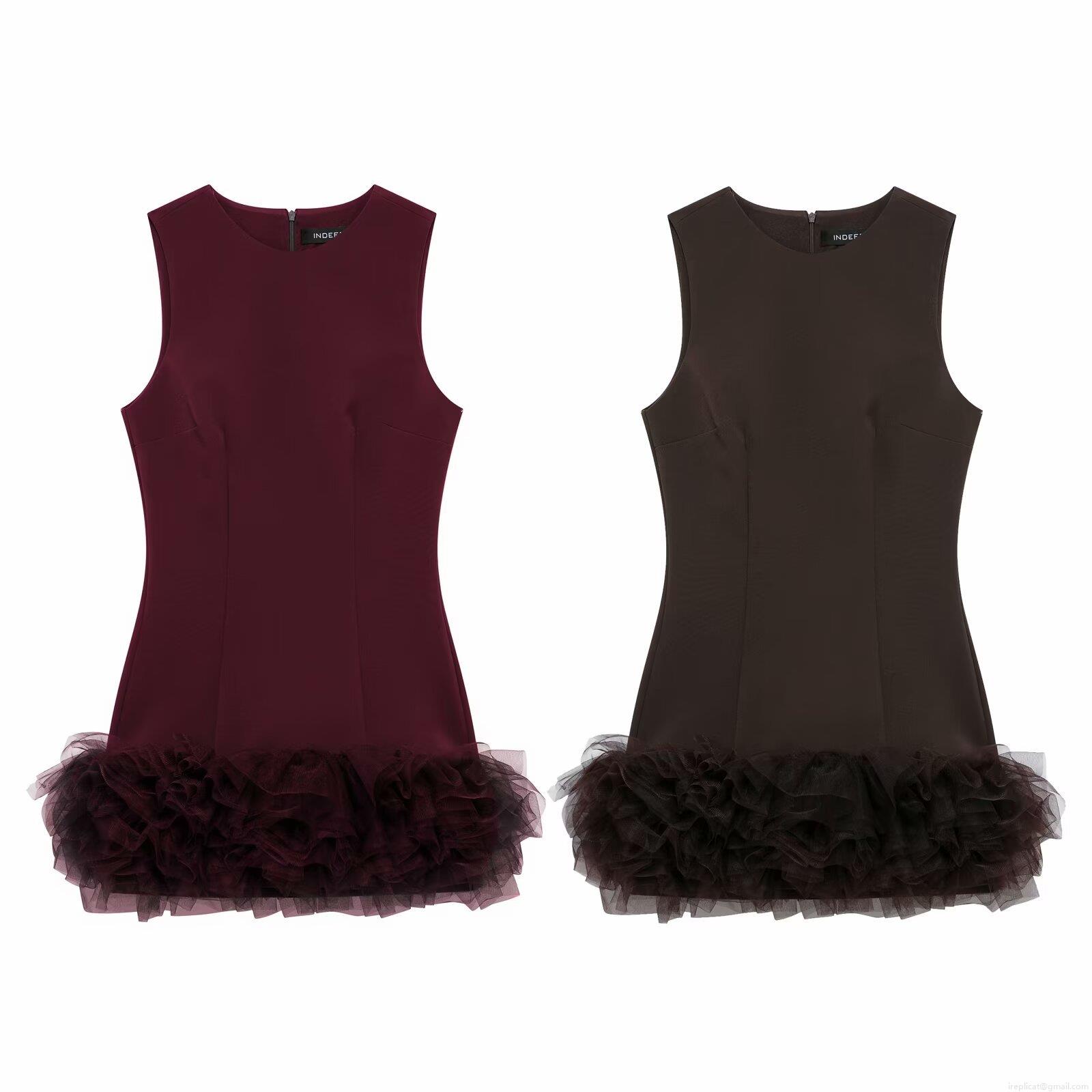 Solid Color, Ruffles, Invisible Zipper, 工字背, Multi-layer Mesh Splicing