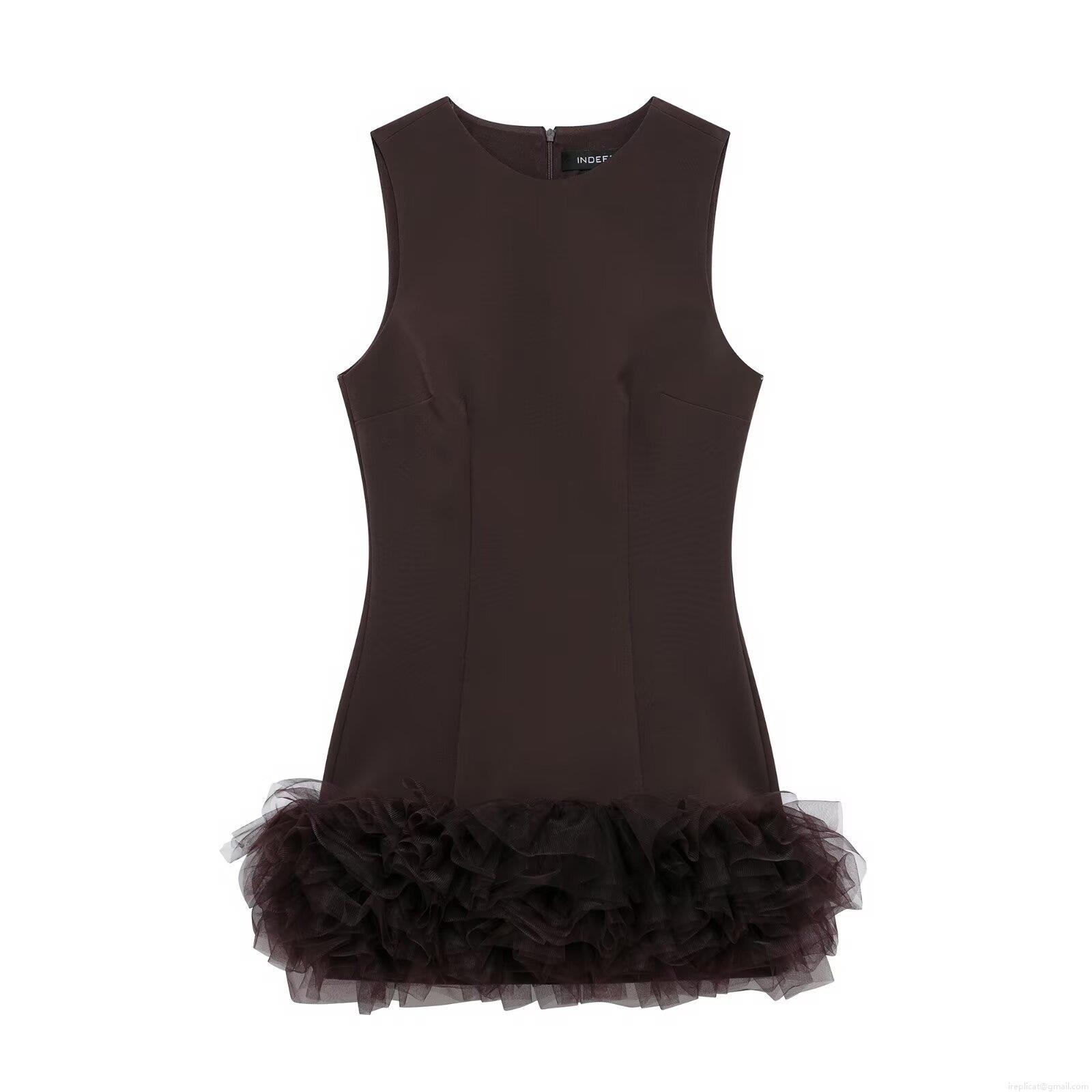 • Women's Sleeveless Mesh Patchwork A-Line Mini Dress Elegant Round Neck Solid Color Slim Fit Party Clubwear Dress With Tiered Tulle Hem