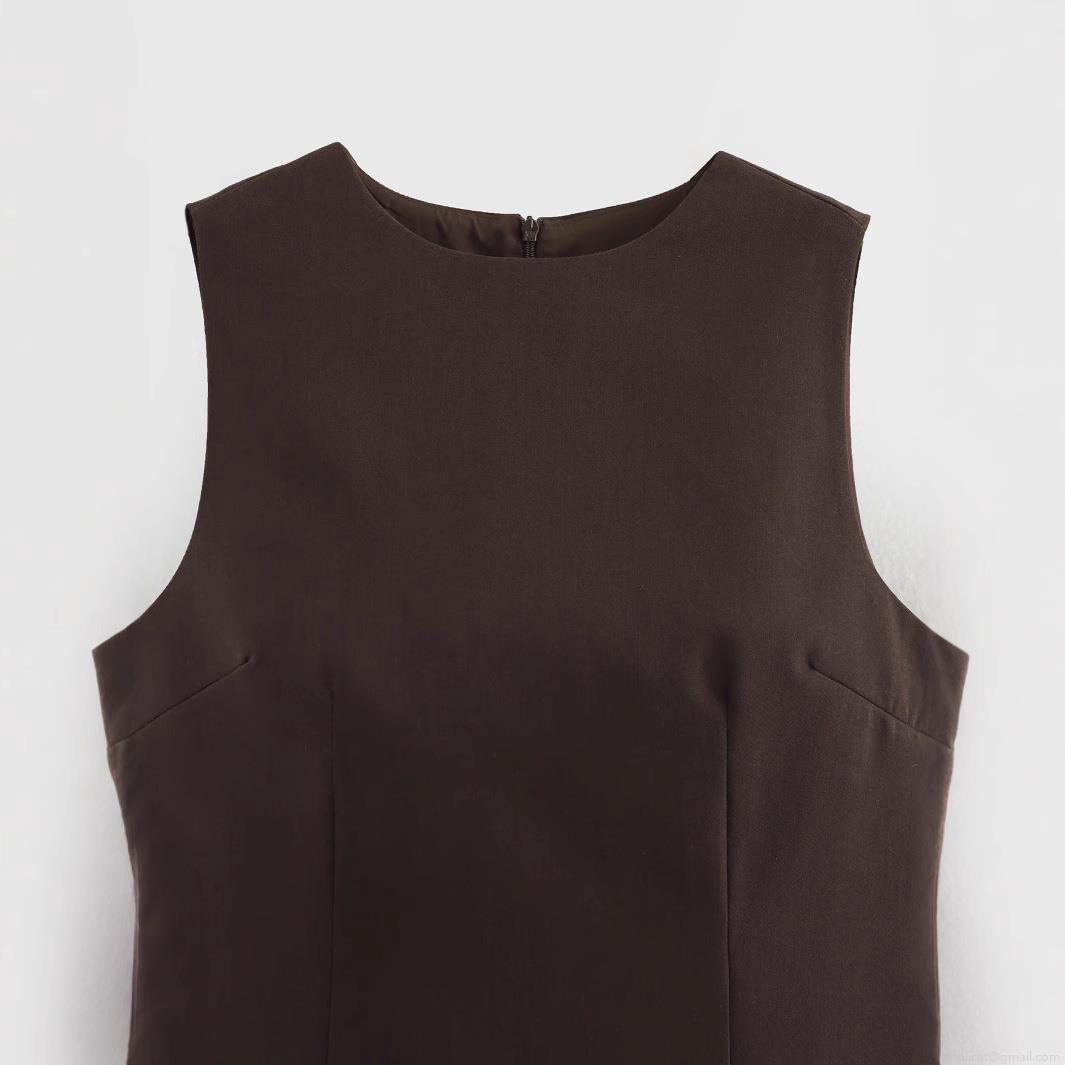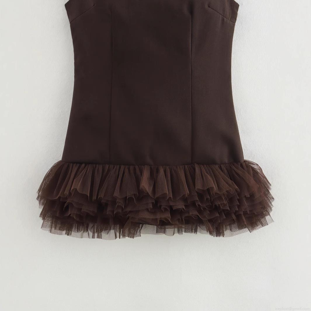 • Women's Sleeveless Mesh Patchwork Mini Dress Round Neck A-Line Coffee Brown Short Skirt Summer Streetwear Chic Spliced Tulle Dress For Party Night Out