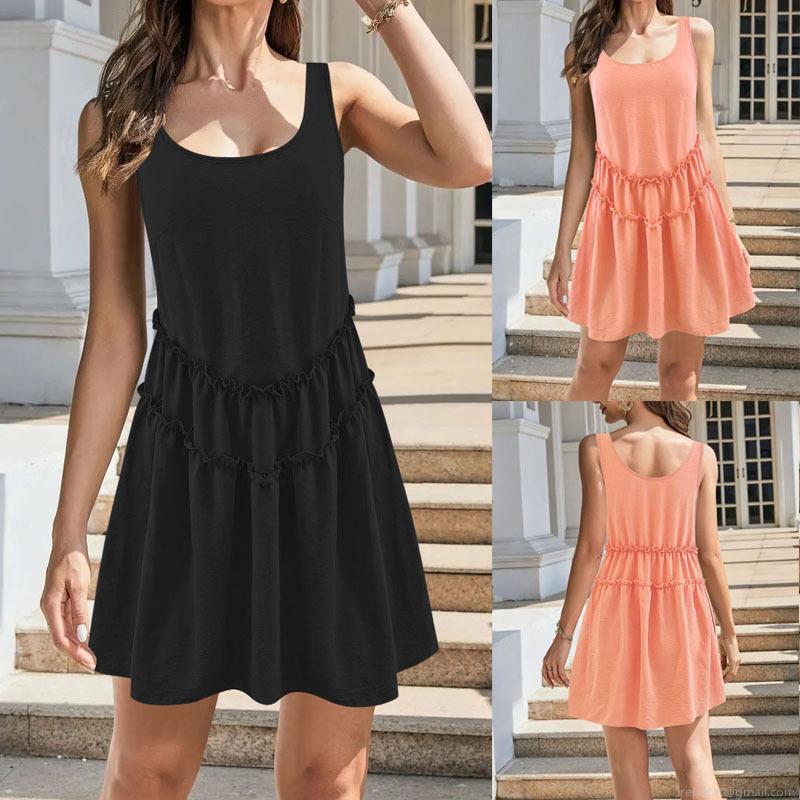 • Women's Sleeveless Mini Dress Polyester Spandex Ruffle Tiered Summer Beach Vacation Sundress Sweet Solid Color Loose Fit Casual Dress