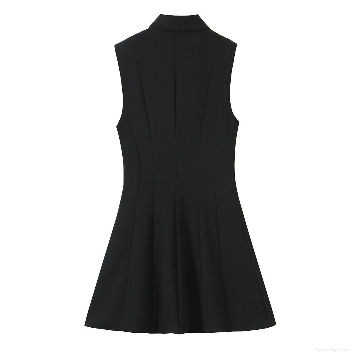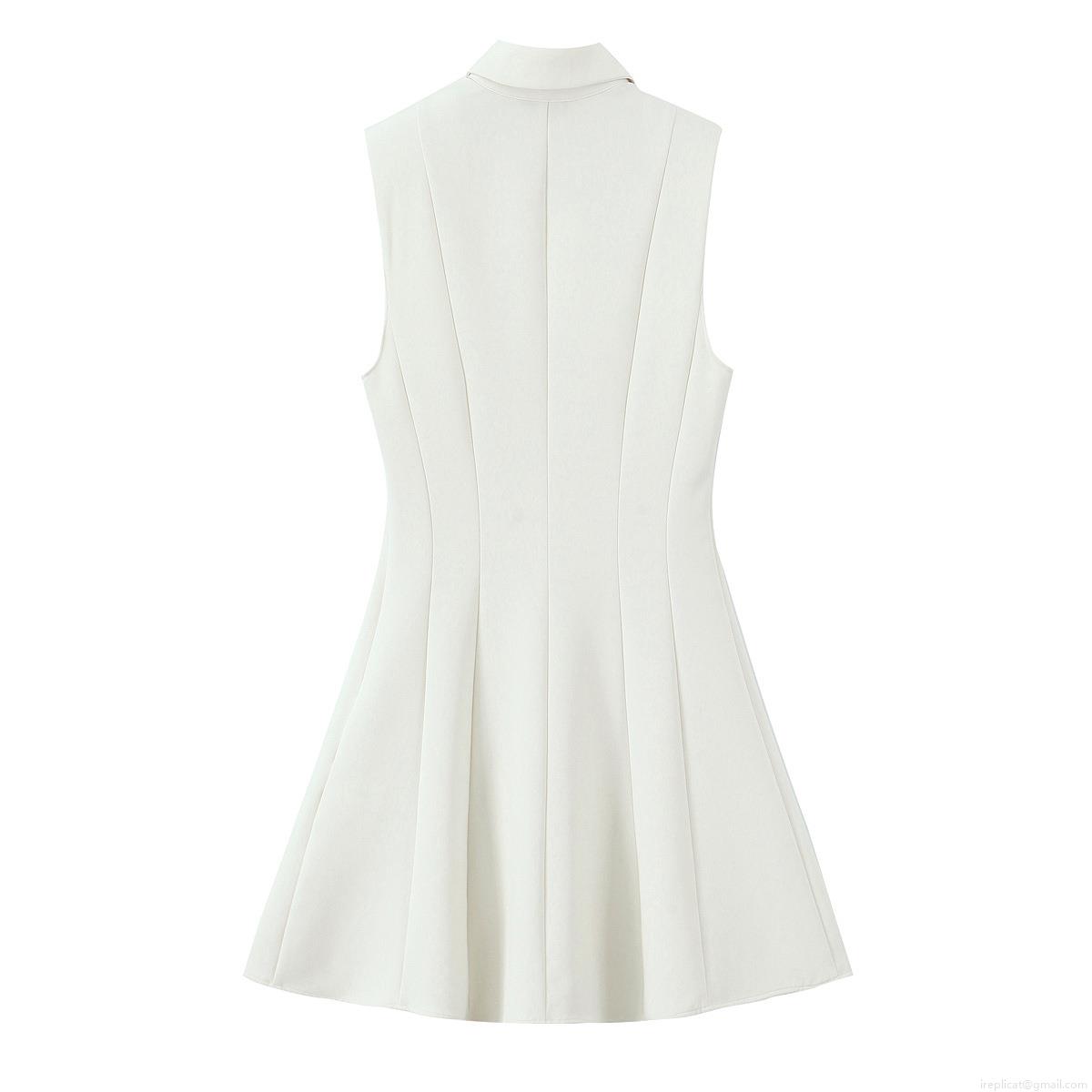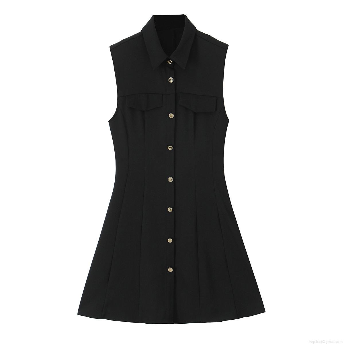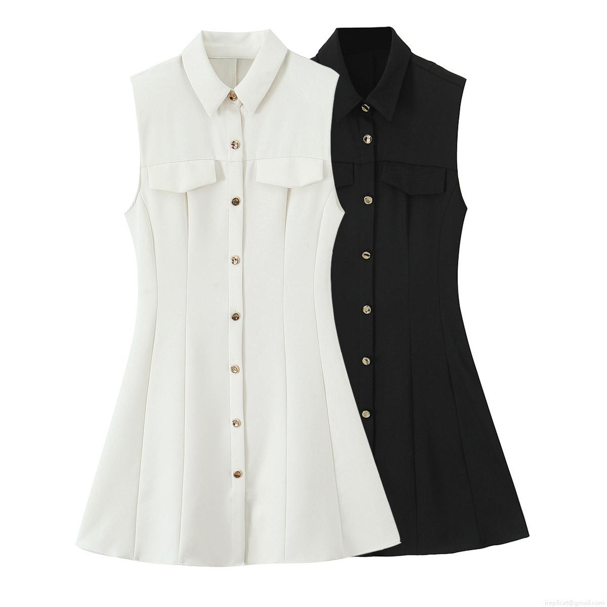 • Women's Sleeveless Mini Shirt Dress Polyester Lapel Single Breasted A-Line Dress Solid Color Summer Casual Streetwear Short Dress with Flap Pockets Gold Buttons