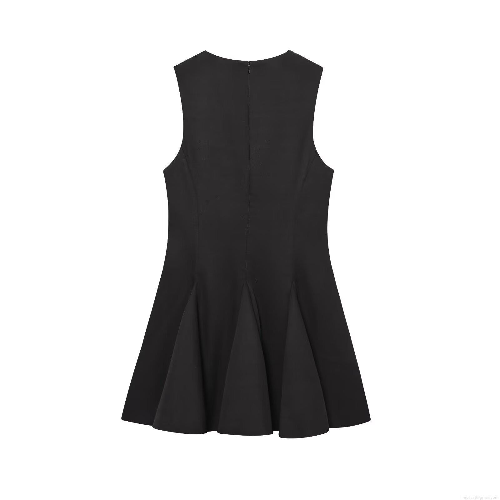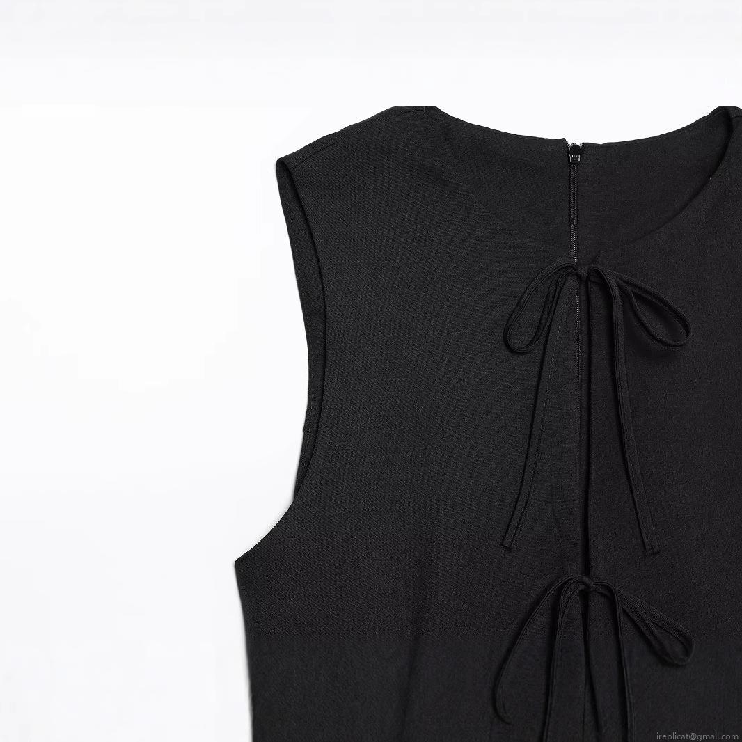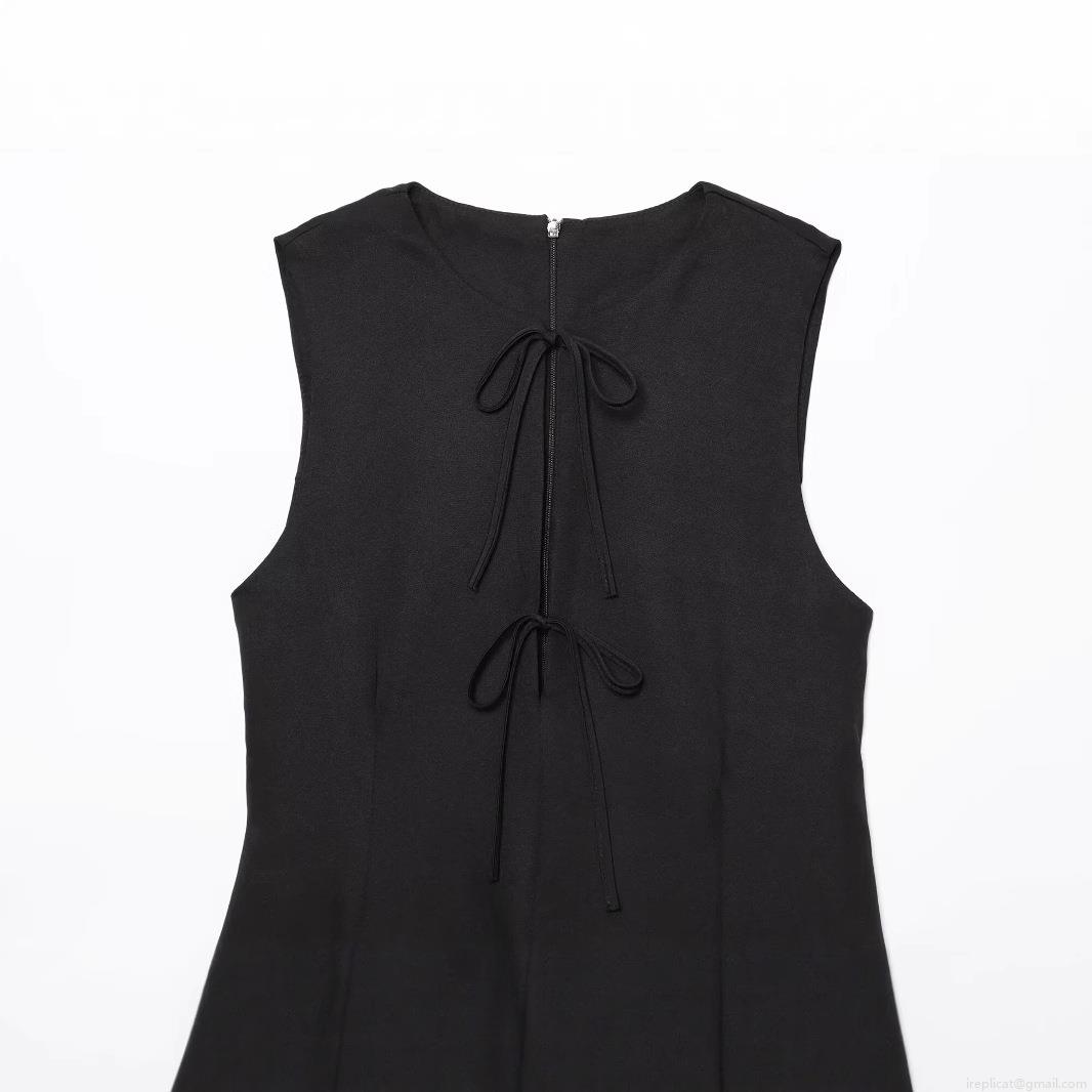• Women's Sleeveless Polyester Mini Dress Featuring Elegant Bow Ties And Pleated Wave Hem Round Neck A-Line Silhouette For Party Date Night Fashion