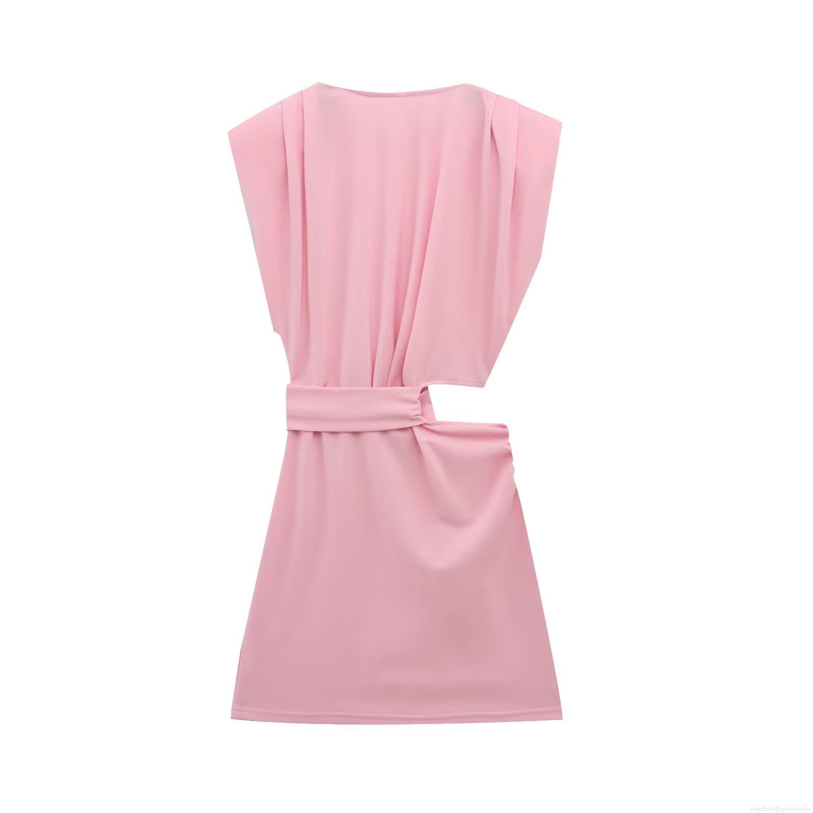 • Women's Sleeveless Round Neck Cut Out Mini Dress Elegant Solid Color Side Waist Hollow Out Bodycon Summer Party Dress Polyester Spandex