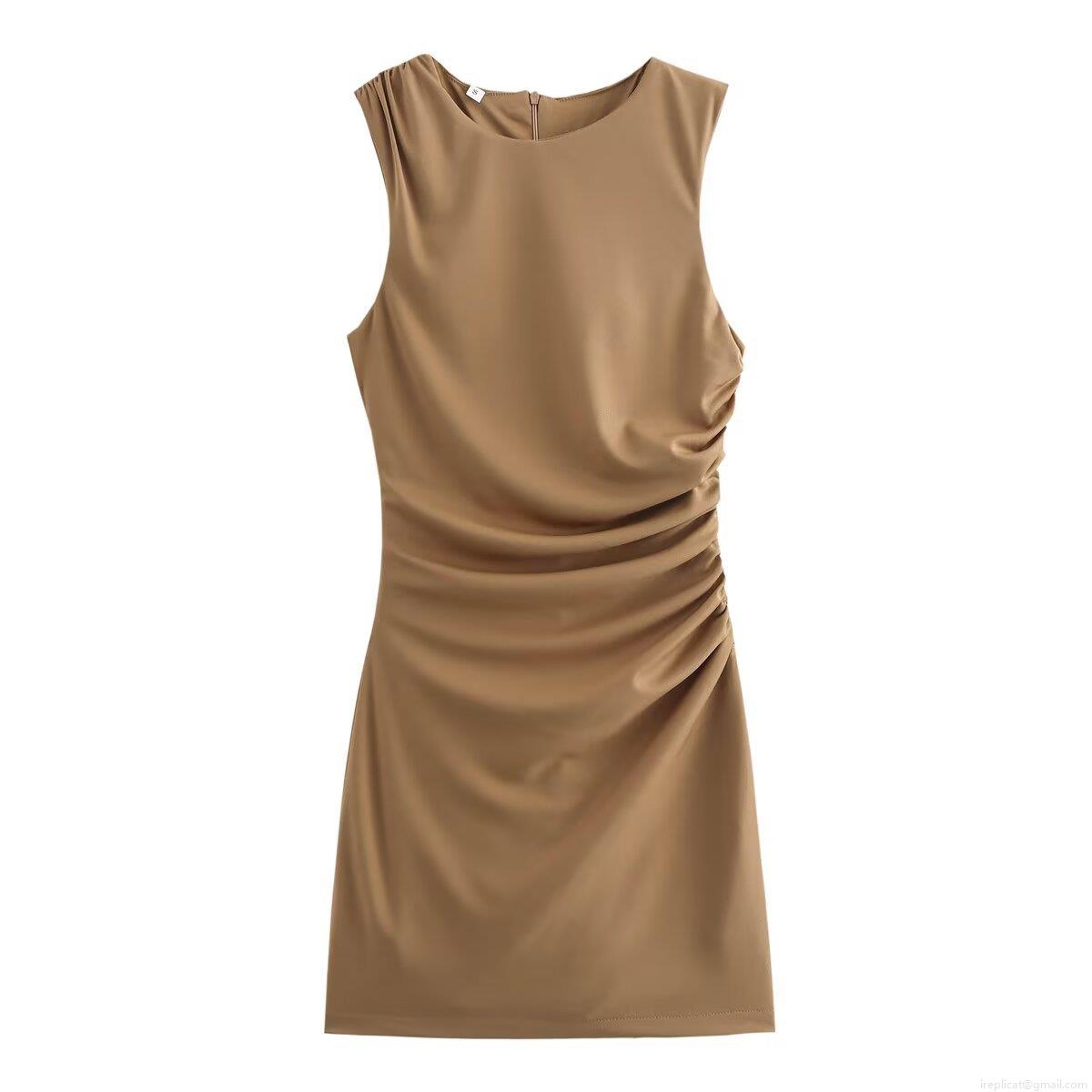• Women's Sleeveless Ruched Mini Dress Elegant Solid Color Bodycon Sundress for Party Dating 100% Polyester Slim Fit Summer Sheath Dress