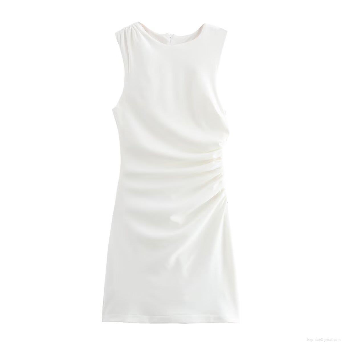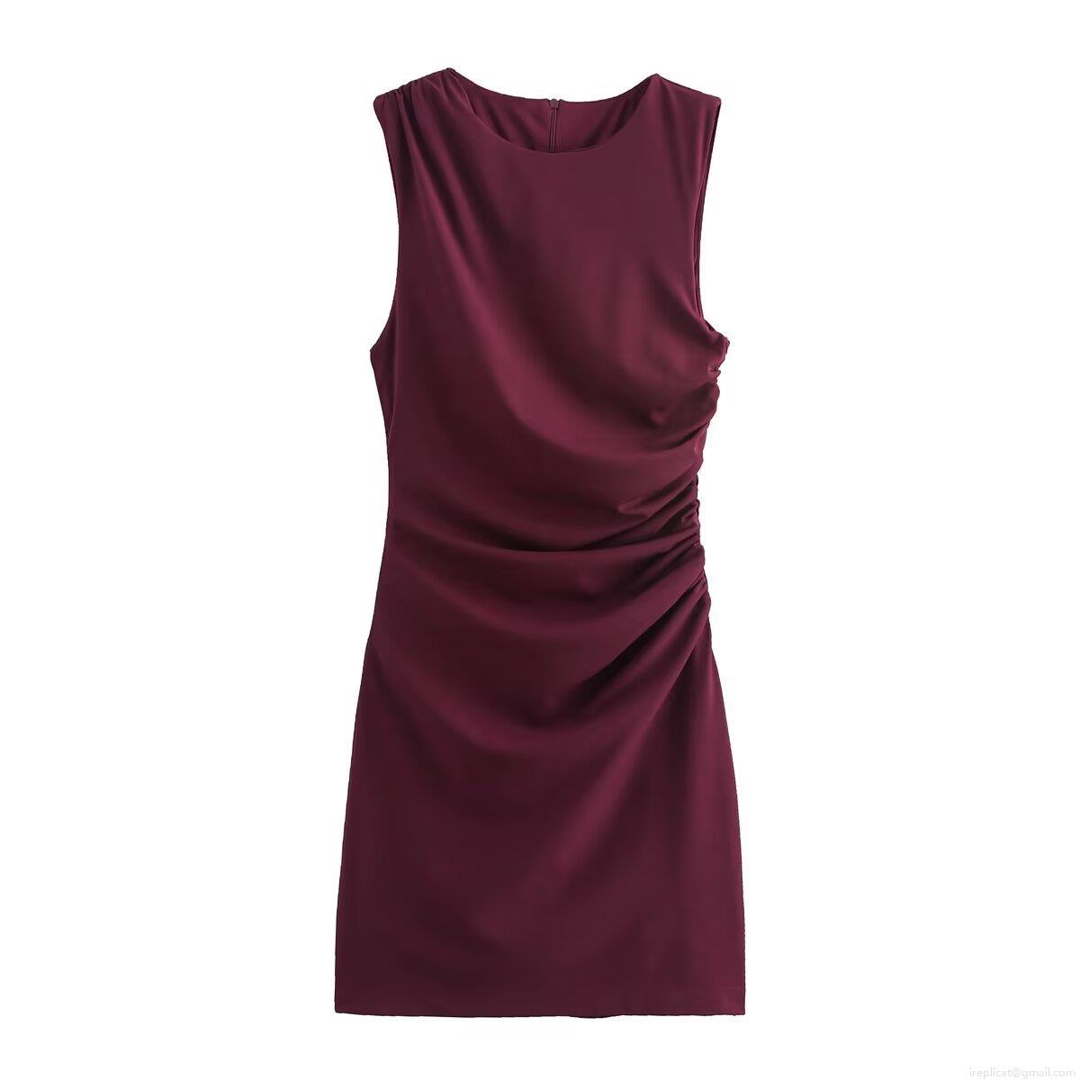 Women's Sleeveless Ruched Mini Dress Elegant Solid Color Bodycon Sundress for Party Dating 100% Polyester Slim Fit Summer Sheath Dress